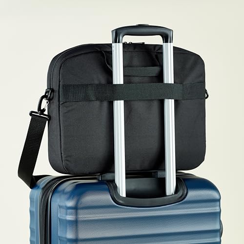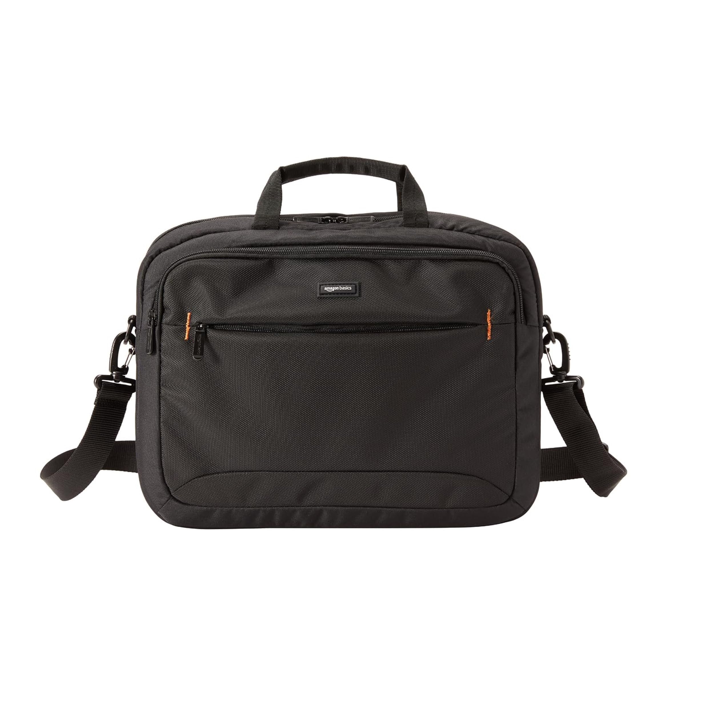 Product Description This bag is ideal for safely transporting laptops, making it great as a laptop carrying case or a compact small laptop bag that fits seamlessly in professional and casual settings. With its high-volume front compartment, it provides ample space for essentials such as power cords, business cards, and USB devices so all of your devices are organized. Additionally, the handy front pocket offers quick access for items like airline tickets or passports. Designed with practical features, the adjustable and removable shoulder strap, along with sturdy grab handles, offers comfort and convenience, making it an excellent choice for those in need of computer cases for laptops or an iPad carrying bag. From the Manufacturer Amazon Basics