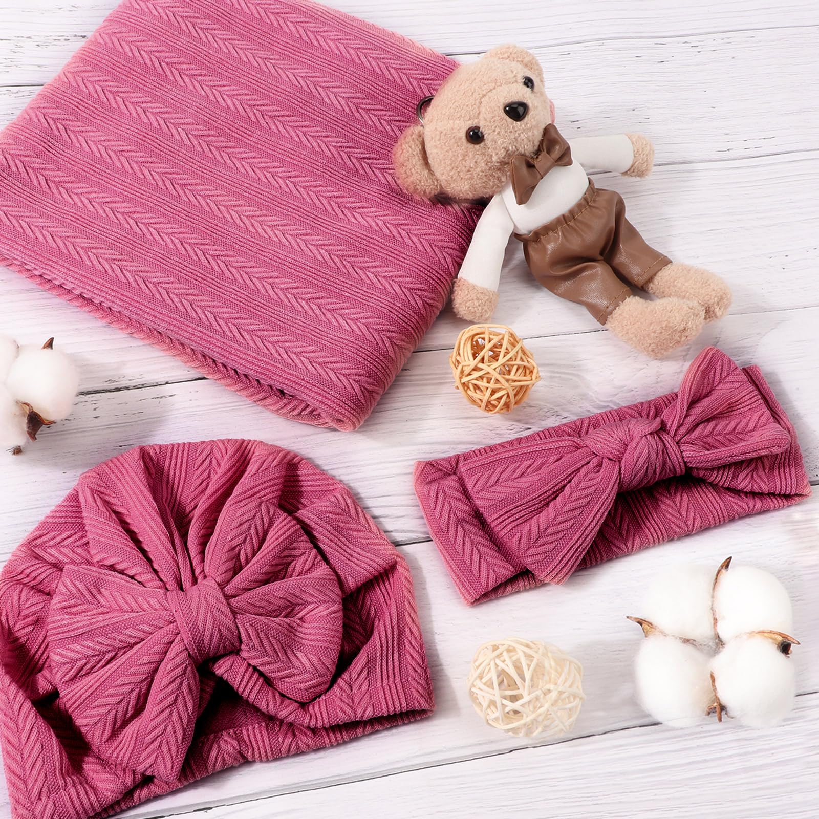 💝【Soft Fabric】- This baby blanket and headband hat set are made of super soft, stretchy and comfortable fabric. Warm and comfortable for baby's delicate skin. They contain no any harmful chemicals and are gentle on even the most sensitive skin.