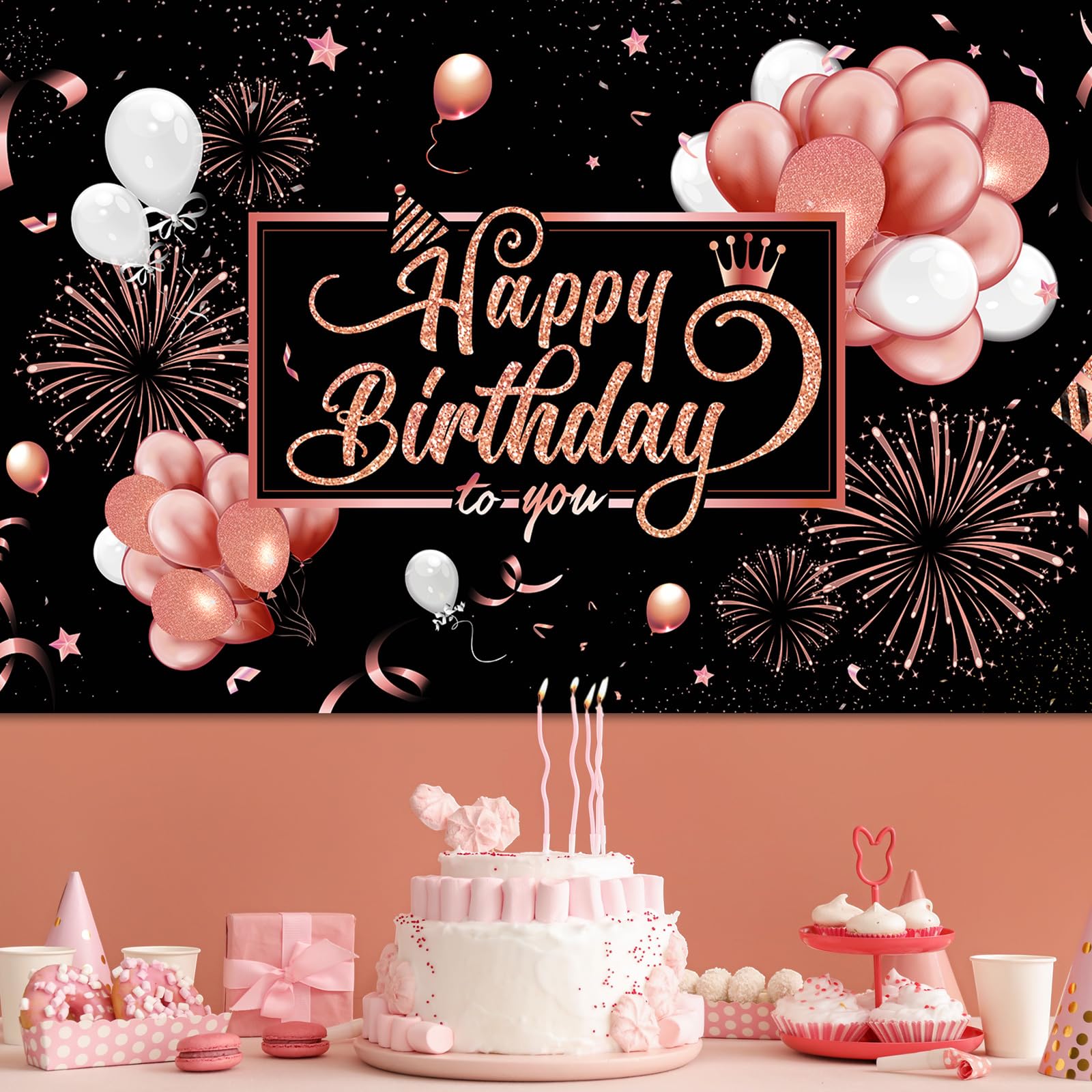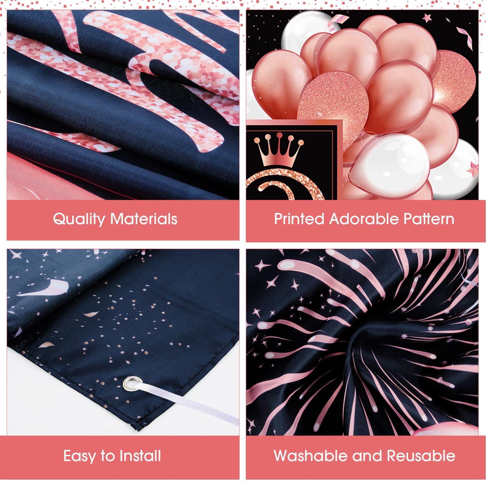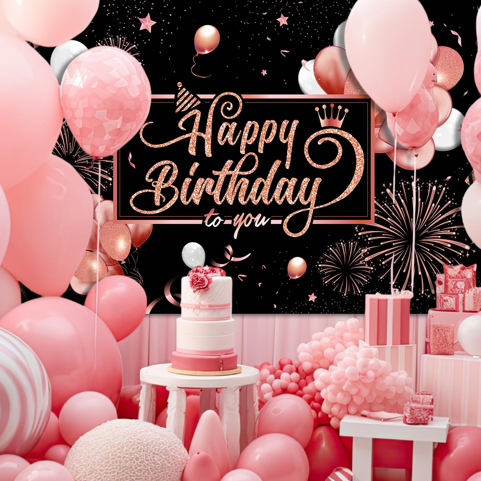 Apply to: this happy birthday backdrop banner is a good addition to birthday party, elegant design with black pink birthday party elements, creating an amazing atmosphere for your party; Ideal for many occasions like theme party, birthday party, baby shower, product photograph, wall decorations, etc