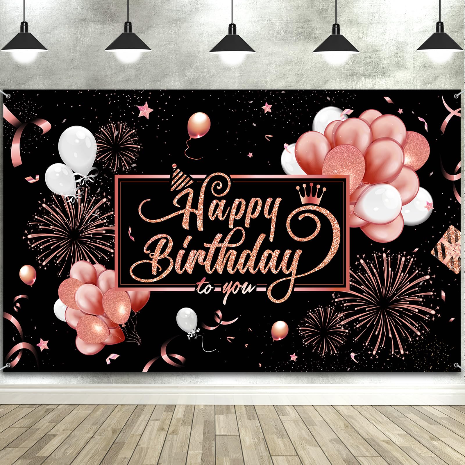 Happy birthday backdrop banner, large black pink fabric pink glittering shiny balloons stars fireworks party photography backdrop banner for men women birthday party decorations, 72.8 x 43.3 inch Wide applications: This happy birthday backdrop banner is a good addition to birthday party, elegant design with black pink birthday party elements, creating an amazing atmosphere for your party. Ideal for many occasions like theme party, birthday party, baby shower, product photograph, wall decorations, and more. Specifications: Color: as the picture shown Size: 185 x 110 cm/ 72.8 x 43.3 inch Quantity: 1 piece Package includes: 1 x Happy birthday backdrop banner 1 X 20 Feet white string Warm note: Please wash them with your hands and dry them in the ventilated place. In addition, there may be some wrinkles in the banners, so please iron them gently. In case of risk of entanglement, be careful when using.