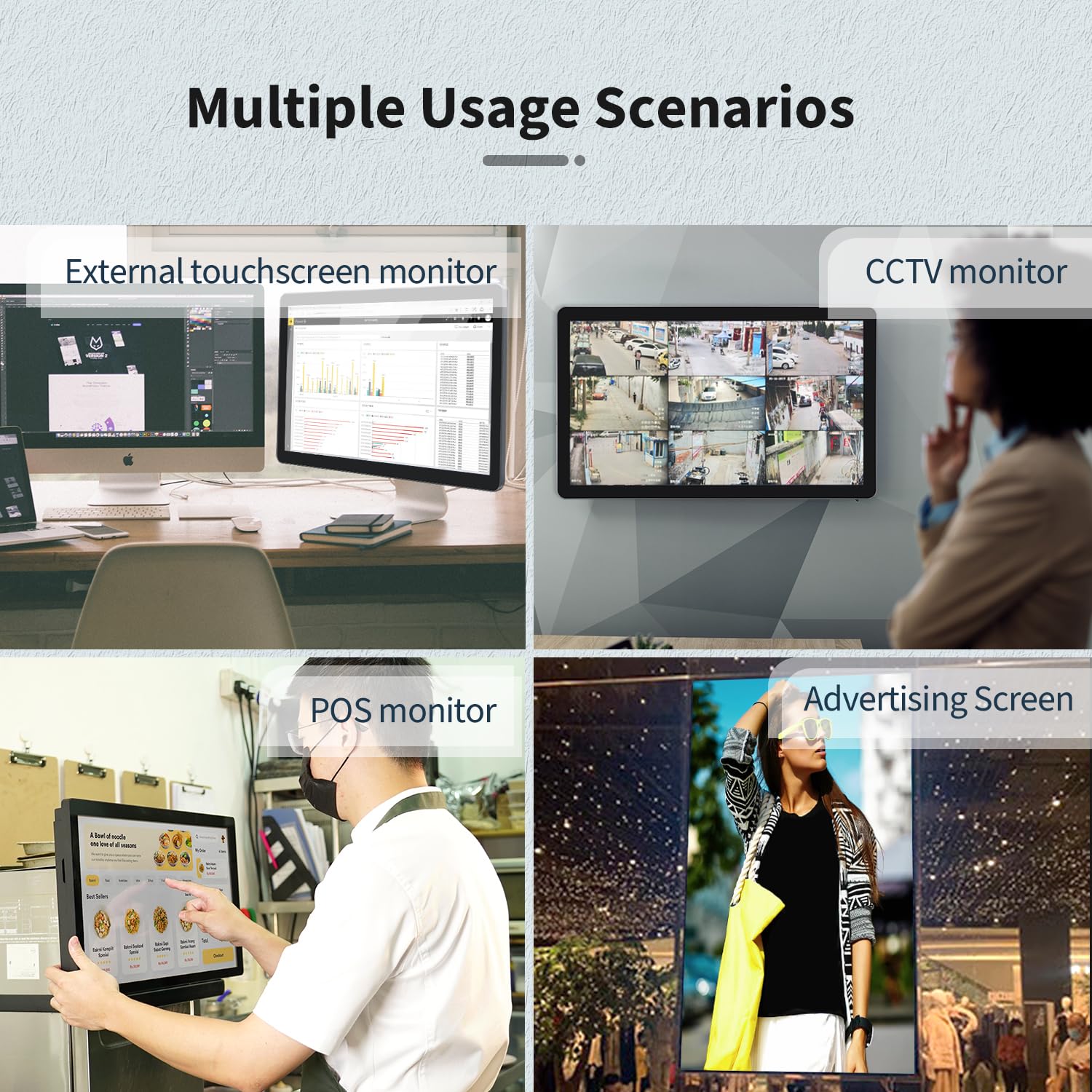 Multifunction External Monitor: this touchscreen monitor can work with computers, laptops, tablets, smartphones, and game devices, used as touch screen kiosk for POS system, industrial touch display, menu screen for restaurant and second monitor for PC & Switch etc, can run vertically