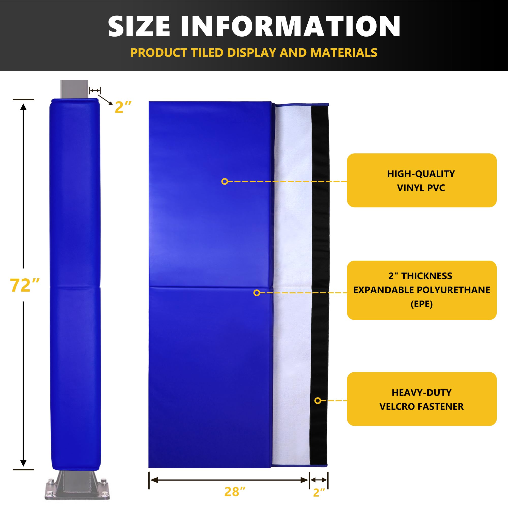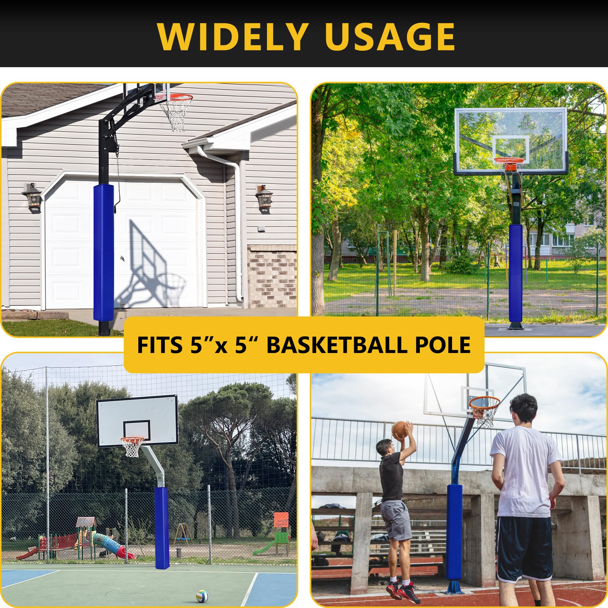 【Square 5" x 5" Fixed Height Basketball Pole Pad】Our 72" tall & 2" thick heavy-duty indoor & outdoor vinyl pole pad cushion provides ultimate protection against pole impact. Compatible with square 5 x 5 Inch basketball hoop poles. 【The back of the protective pad features a Whole Piece of Velcro】
