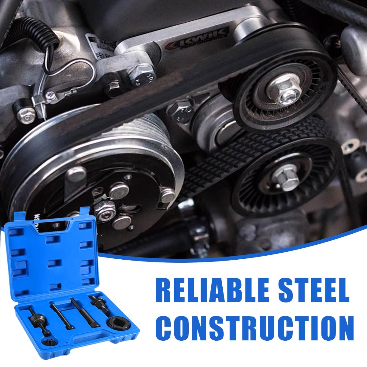 【High-Quality Materials】: Crafted from premium carbon steel and subjected to rigorous heat treatment, this power steering pump pulley tool boasts exceptional strength and superior wear resistance. The advanced blackening surface treatment significantly boosts its anti-corrosion properties, ensuring long-lasting performance and reliability through repeated use in demanding automotive repair environments, providing mechanics with a trustworthy and resilient instrument.