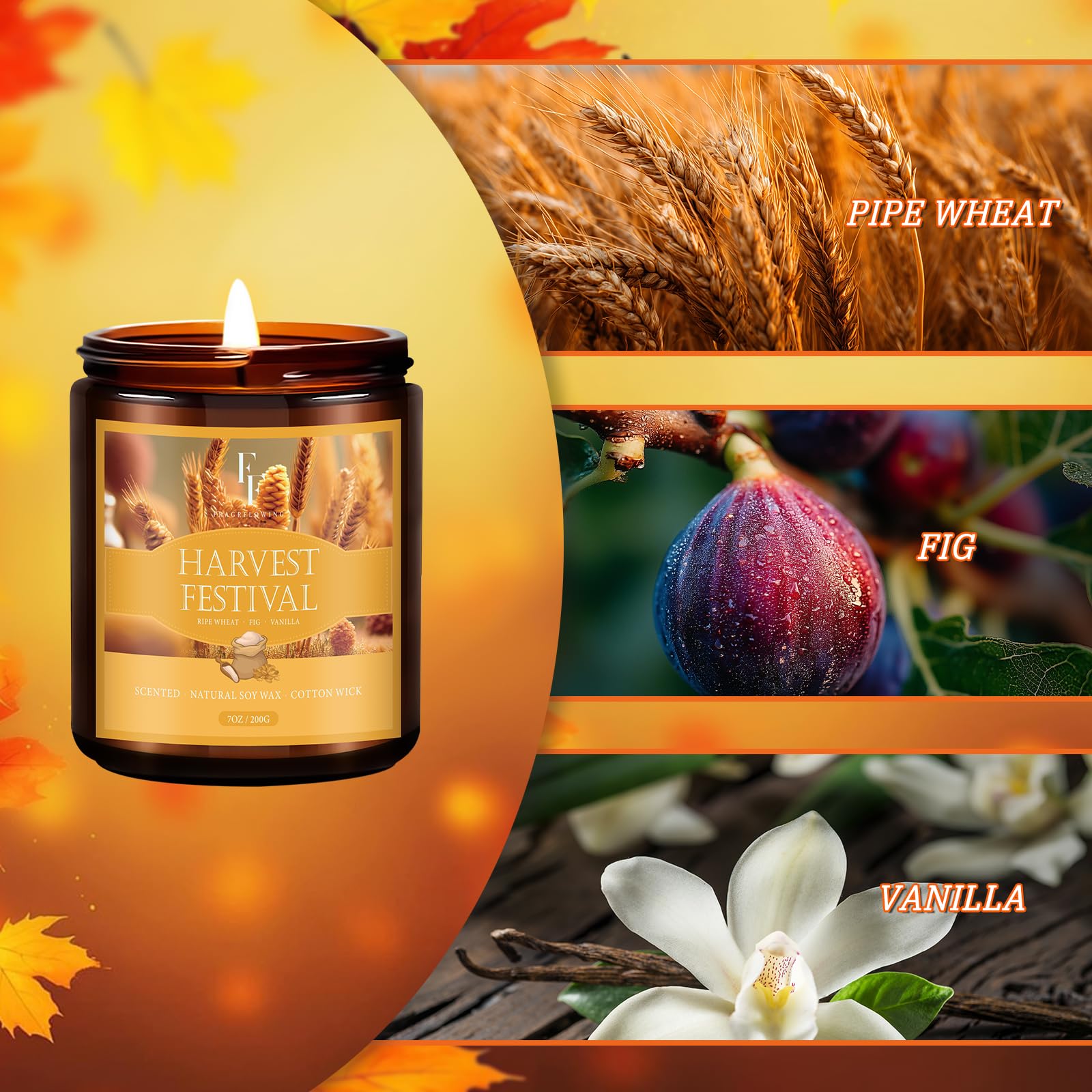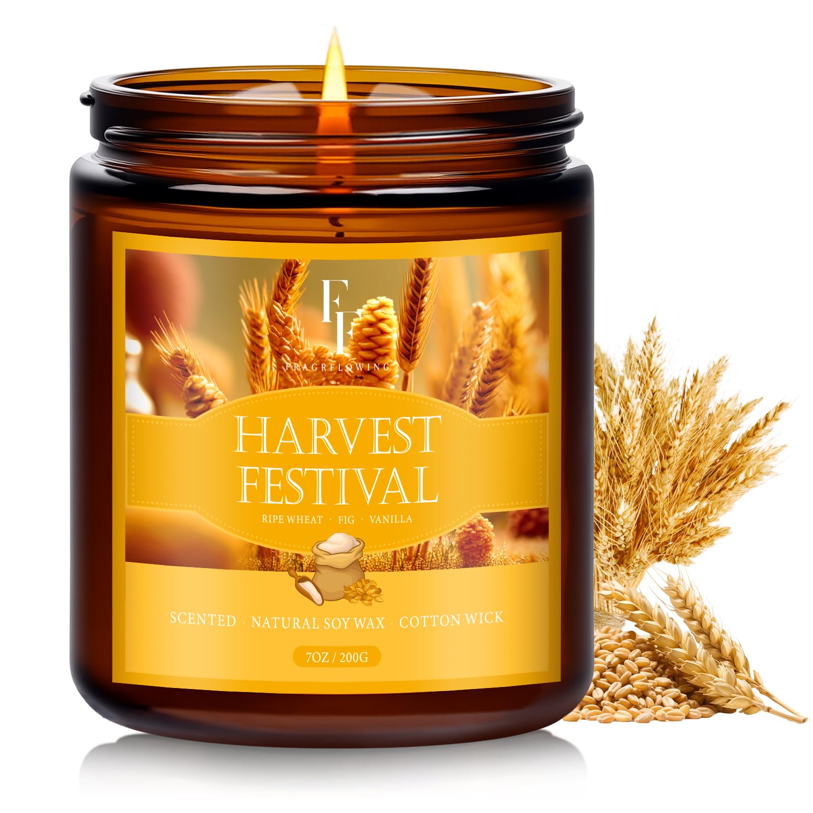 Harvest Festival Scented Candle: Celebrate the bountiful harvest season with the rich scent of mature wheat and figs, enhanced by delicate hints of vanilla. This fragrance captures the essence of fall, where fields are ripe with grain and orchards overflow with fruit. The warm, earthy notes create a tranquil ambiance that invites reflection and gratitude for nature's gifts, making it an ideal backdrop for autumn gatherings and festivities