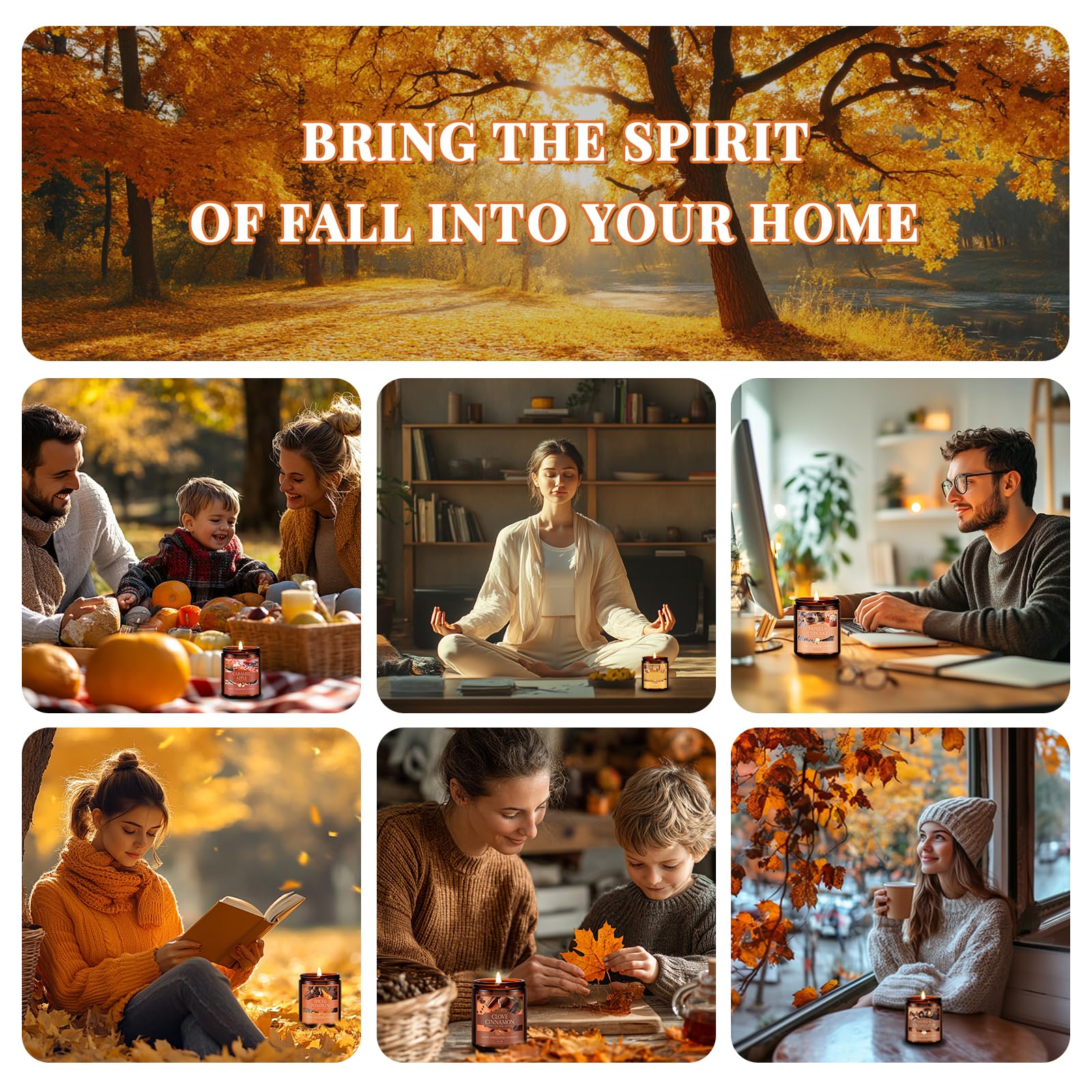Long-Lasting Burn Time: Enjoy up to 50 hours of soothing ambiance with our premium fall scented candle, allowing you to relish the enchanting fall scents throughout the season, making every moment feel special
