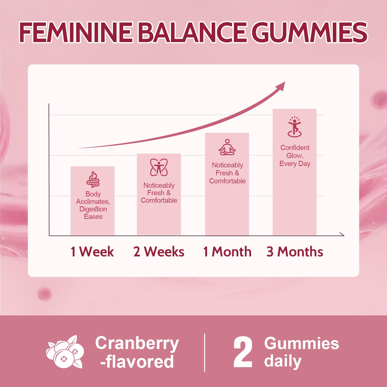 [Clean & Convenient Sugar-Free Formula] Zero sugar, gluten-free, vegan, and gelatin-free, our cranberry-flavored gummies offer a delicious alternative to hard-to-swallow capsules—just 2 gummies daily for effortless daily health maintenance