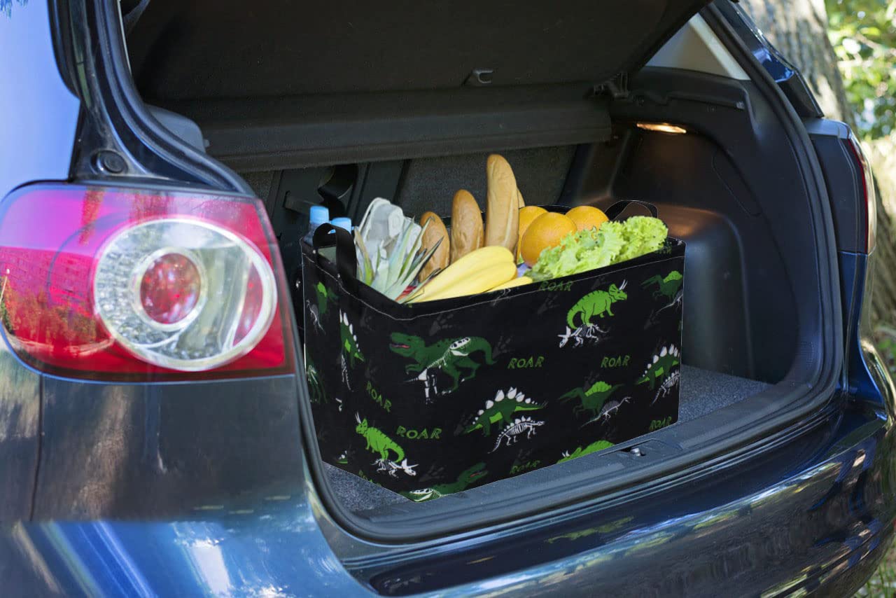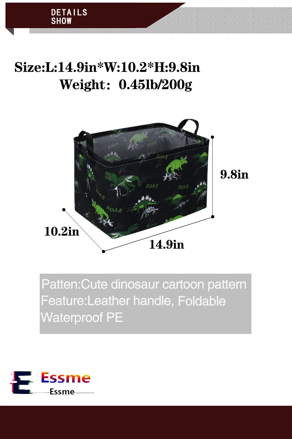 MATERIAL:Dinosaur easter basket made of linen & cotton fabric, waterproof PE coating inner, lightweight and durable