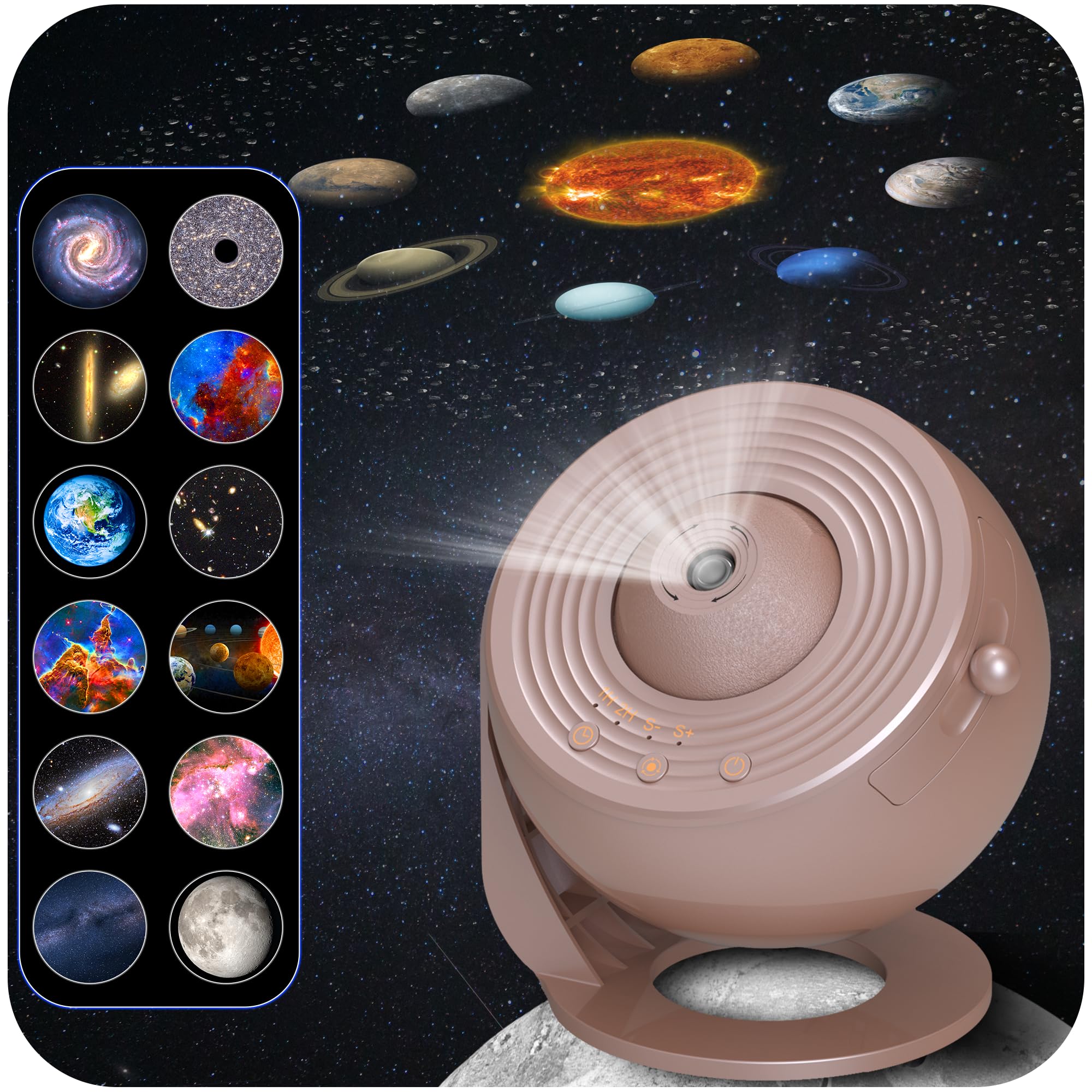 【Upgraded Galaxy Projector】: Please pull the tray handle to replace the slide to switch the galaxy pattern. Transform your room into 13 stunning universe spectacles using film discs. The pattern names are 1: Solar System, 2: Earth, 3: Moon, 4: The Milky Way, 5: Galaxy, 6: Andromeda Galaxy, 7: NGC4302-NGC4298, 8: Hubble Deep Filed, 9: M60-UCD1, 10: North America Nebula, 11: Mystic Mountain and 12: Small Magellanic Cloud. 13: the Galaxy (in-built).
