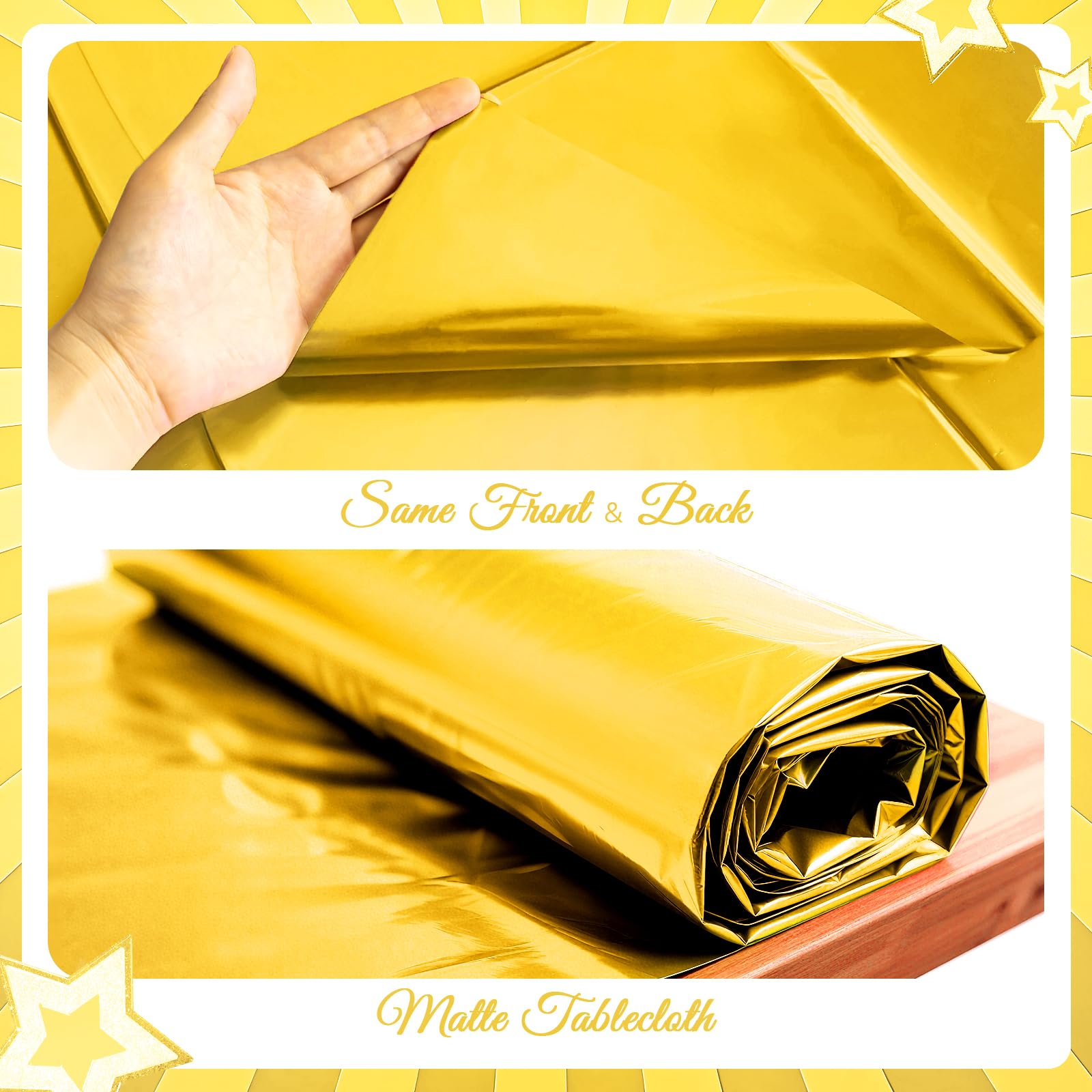 Create An Unforgettable Ambiance: Elevate your party tables with our exquisite metallic matte texture tablecloth. Immerse your guests in a world of understated luxury and create an unforgettable ambiance that will be remembered long after the celebration ends.