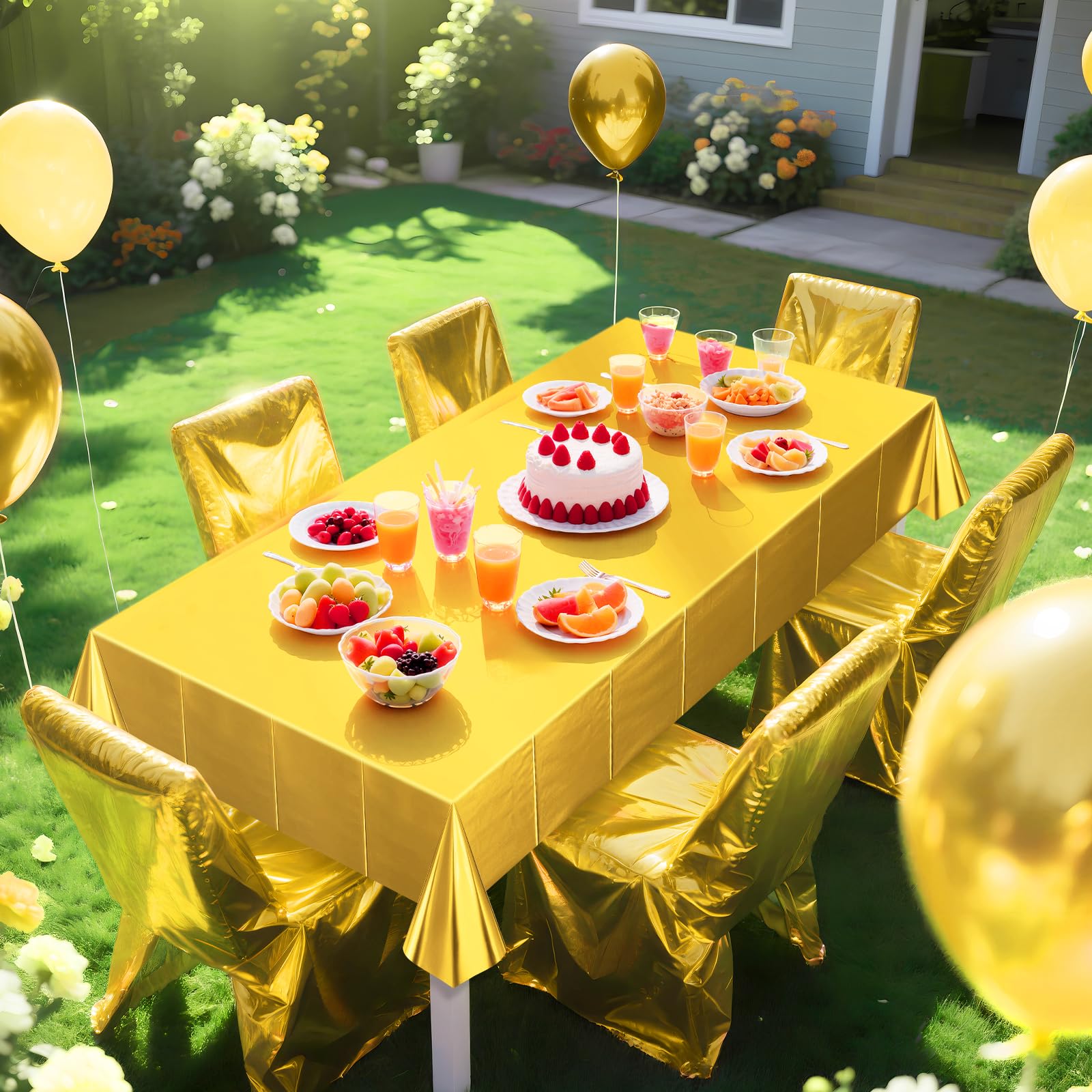 Captivating Metallic Elegance Enhance your party tables with the captivating allure of the Metallic Matte Plastic Tablecloth. This exquisite tablecloth features a stunning metallic texture that adds a touch of elegance and sophistication to any occasion, creating a memorable atmosphere that will leave a lasting impression on your guests. Dazzling and Waterproof This tablecloth boasts a mesmerizing matte metallic sheen that brings a subtle yet glamorous glow to your party decor. The waterproof plastic material ensures easy cleanup, allowing you to enjoy the festivities without worrying about spills or stains. Easy to Clean and Maintain Spend less time on cleanup and more time enjoying the celebration. Our Tablecloth is designed for convenience, simply wipe it clean with a damp cloth to remove any dirt or residue, making it a hassle-free choice for your party needs. Versatile Decoration Whether it's a formal dinner party, a festive birthday celebration, or a themed event, this tablecloth is a versatile choice that complements various decor styles. Its metallic texture effortlessly enhances the visual appeal of your table setup. Perfect Size and Material Measuring 40 x 108 inches, this tablecloth provides ample coverage for most standard-sized tables. It is made from high-quality plastic with a matte metallic finish, ensuring durability and a luxurious feel that adds a touch of sophistication to your party ambiance. Create Lasting Memories Impress your guests with the captivating shimmer and timeless elegance of the Metallic Matte Plastic Tablecloth. Its luxurious metallic texture will create a memorable atmosphere that sets the stage for unforgettable moments, making your party truly special. Specification: Color: Bright Gold Size: 40x108" Material: Plastic Package Includes: 1 Pieces Metallic Matte Plastic Tablecloth