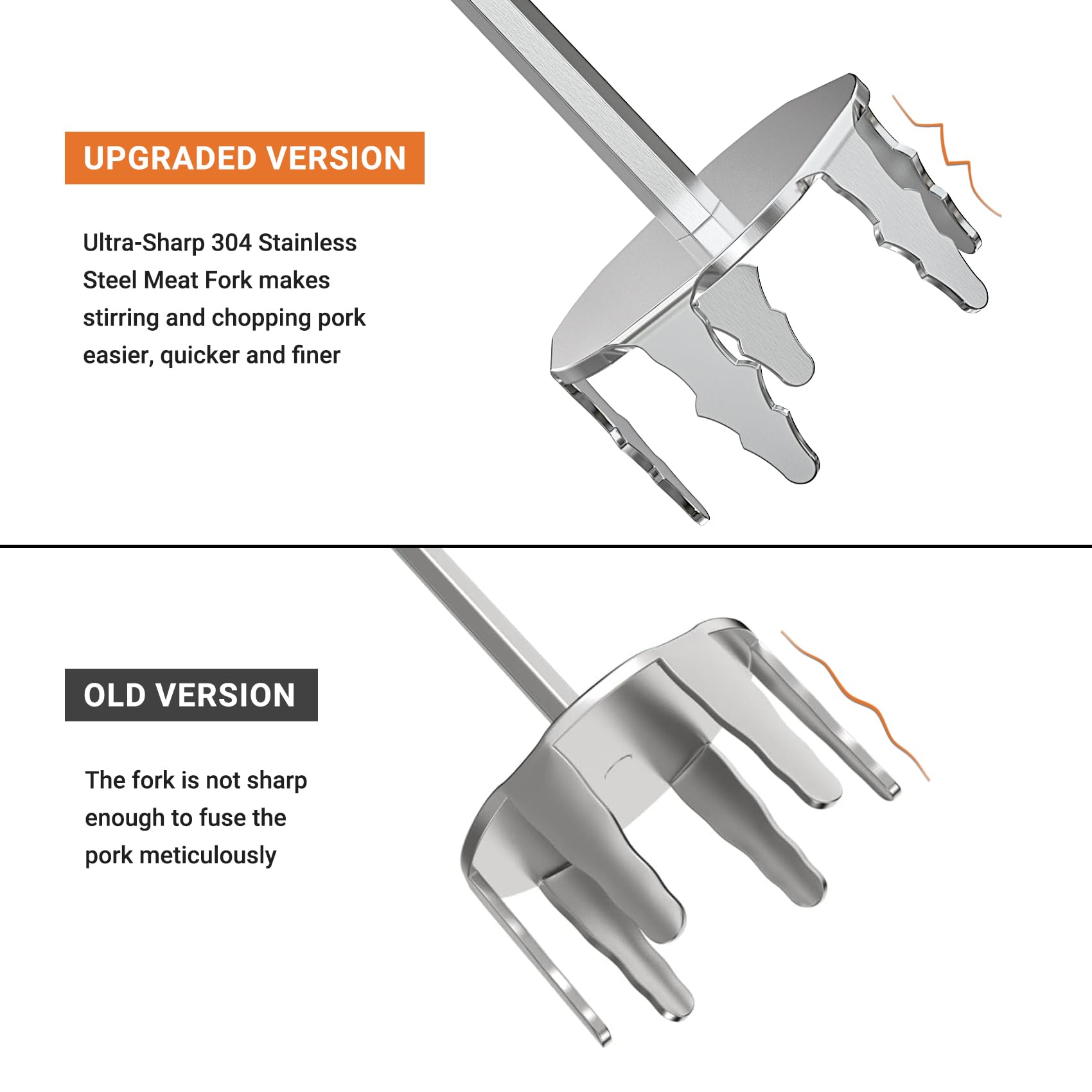 【Upgraded Sharp Meat Fork Design】-Upgraded powerful sharp meat fork design makes stirring and chopping pork easier, quicker, and finer. Product dimension:13.36 inch long, 3 inch diameter