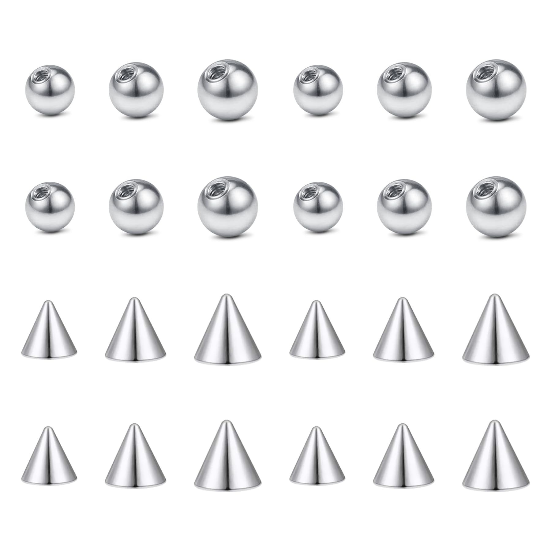 ✿[Total 20pcs] 10pcs round replacment balls, 10pcs spike piercing balls, total 20pcs stainless steel body jewelry replacement balls