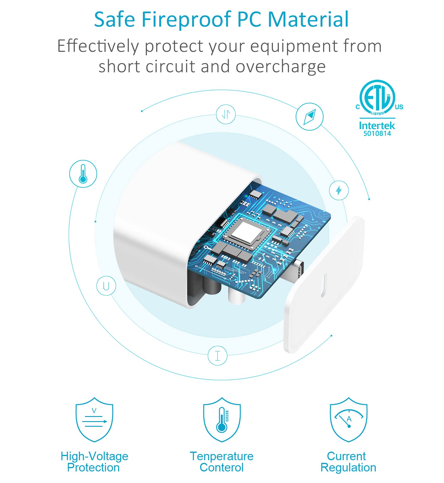 【USB C Charger Block 】With the MFi Chip, the USB-C to lightning cord equips automatic chip recognition function, full support with iOS versions.20W USB-C Charger Offers Multiple Safeguards Automatically. Multi-Charging Protection Keeps Your Device Safe From Over-Current Over-Voltage Over- Heating & Short-Circuiting.
