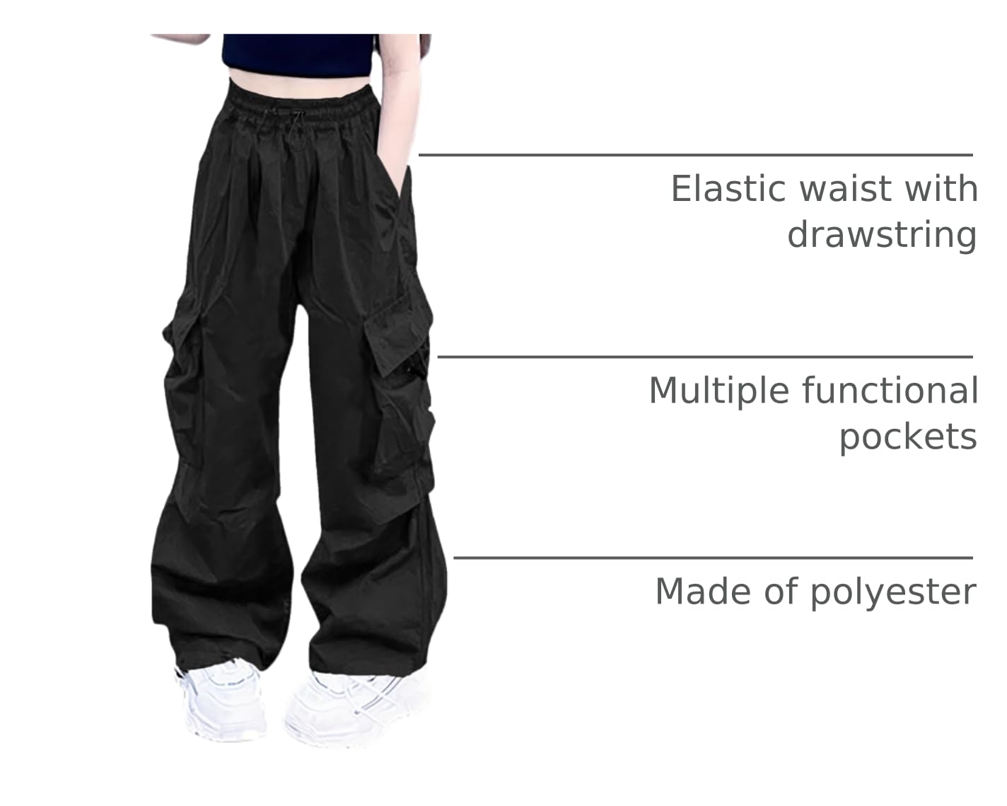 Features:Elastic waist/ drawstring . Multi pockets for functionally, the strings at your ankle, straight wide leg and loose joggers