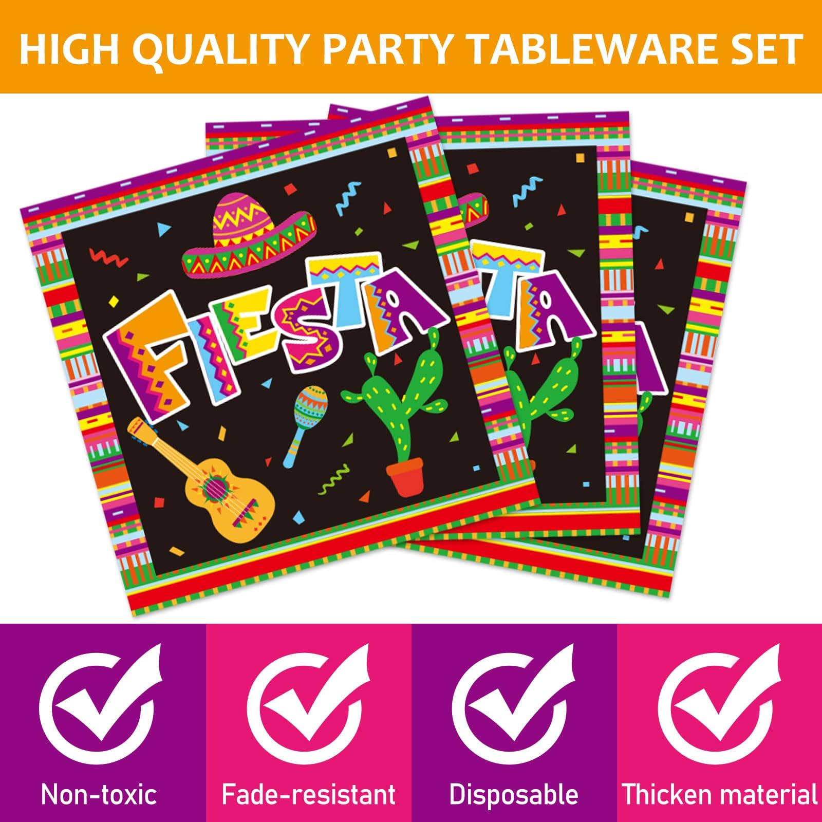 Premium Material:Our fiesta theme party plates and napkins are made of high-quality paper.Our forks are made of high-quality plastic.This plate is light weight, easy to operate, and this napkin is very soft and very comfortable to use.