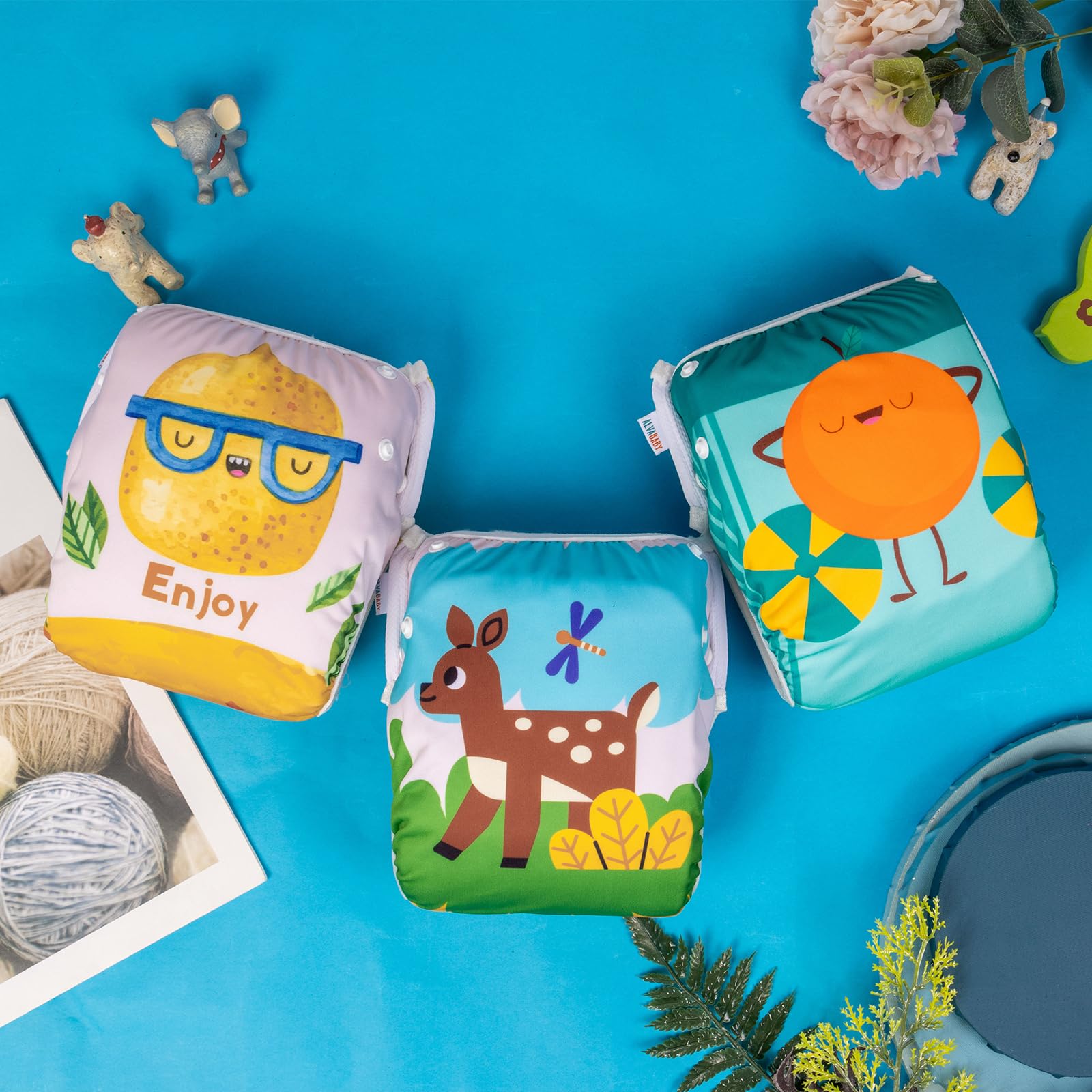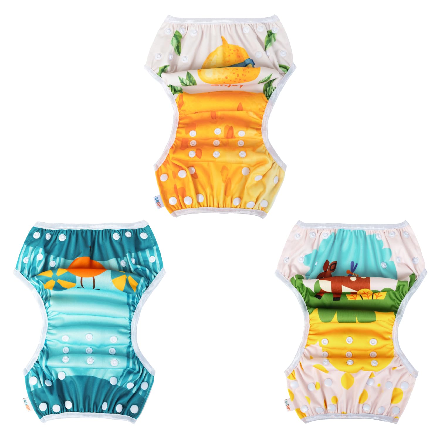 HIGN QUALITY, ADJUSTABLE, REUSABLE & WATERPROOF -ALVABABY swim diapers are made from waterproof 100% polyester PUL outer layer. Elastics waist and legs: Interior Polyester Elastics at the waist and leg openings with soft lycra bindings provides a secure, stretchy fit and easy on and off.