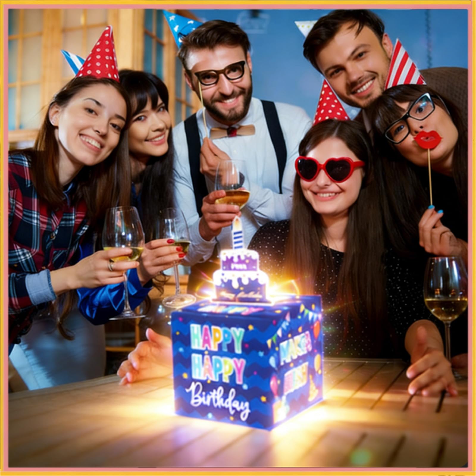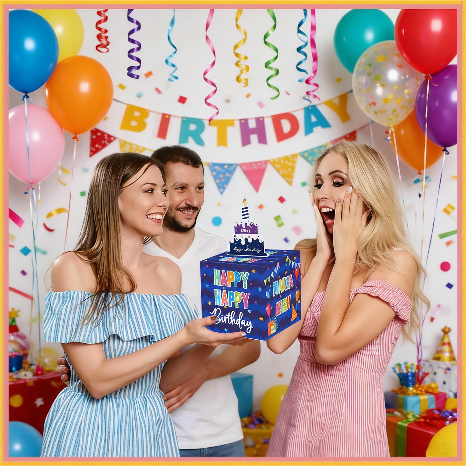【Various Ocassions Suited】The surprise birthday box explosion is suitable for various of occasions whether it's birthday party,festval or holiday celebrations at any age, capable of expressing good wishes and blessings perfectly by putting inside no matter cash, cards, pictures or any other gifts you can imagine.money roll gift box makes a big suprise and liven up the enoyable atmosphere!