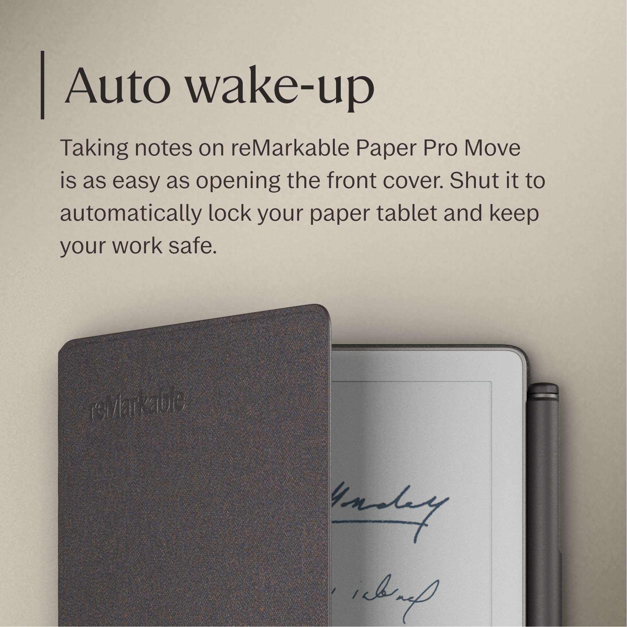 AUTO WAKE ON OPEN – Waking your reMarkable Paper Pro Move from sleep is as easy as opening the front cover. Shut it to automatically lock your paper tablet and keep your notes and documents safe.