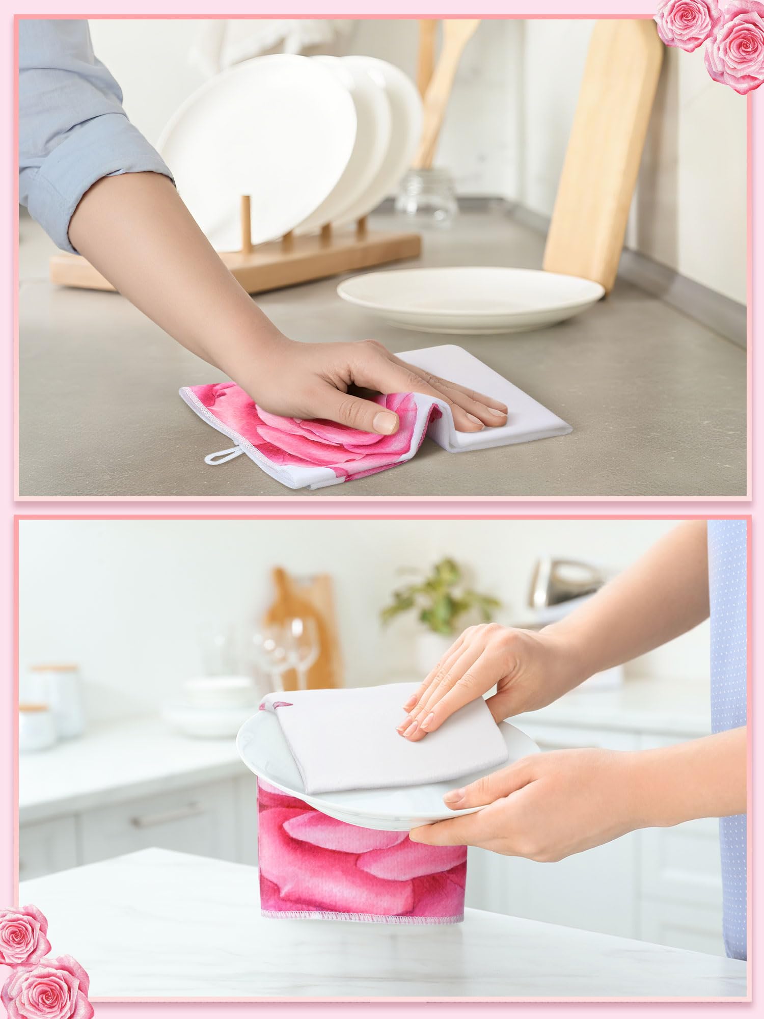 Rose Themed Design: each kitchen towel is printed with rose patterns, exquisite and lovely, elegant and stylish, the main pink create a fresh and comfortable seasonal atmosphere, adding bright color to your home and kitchen