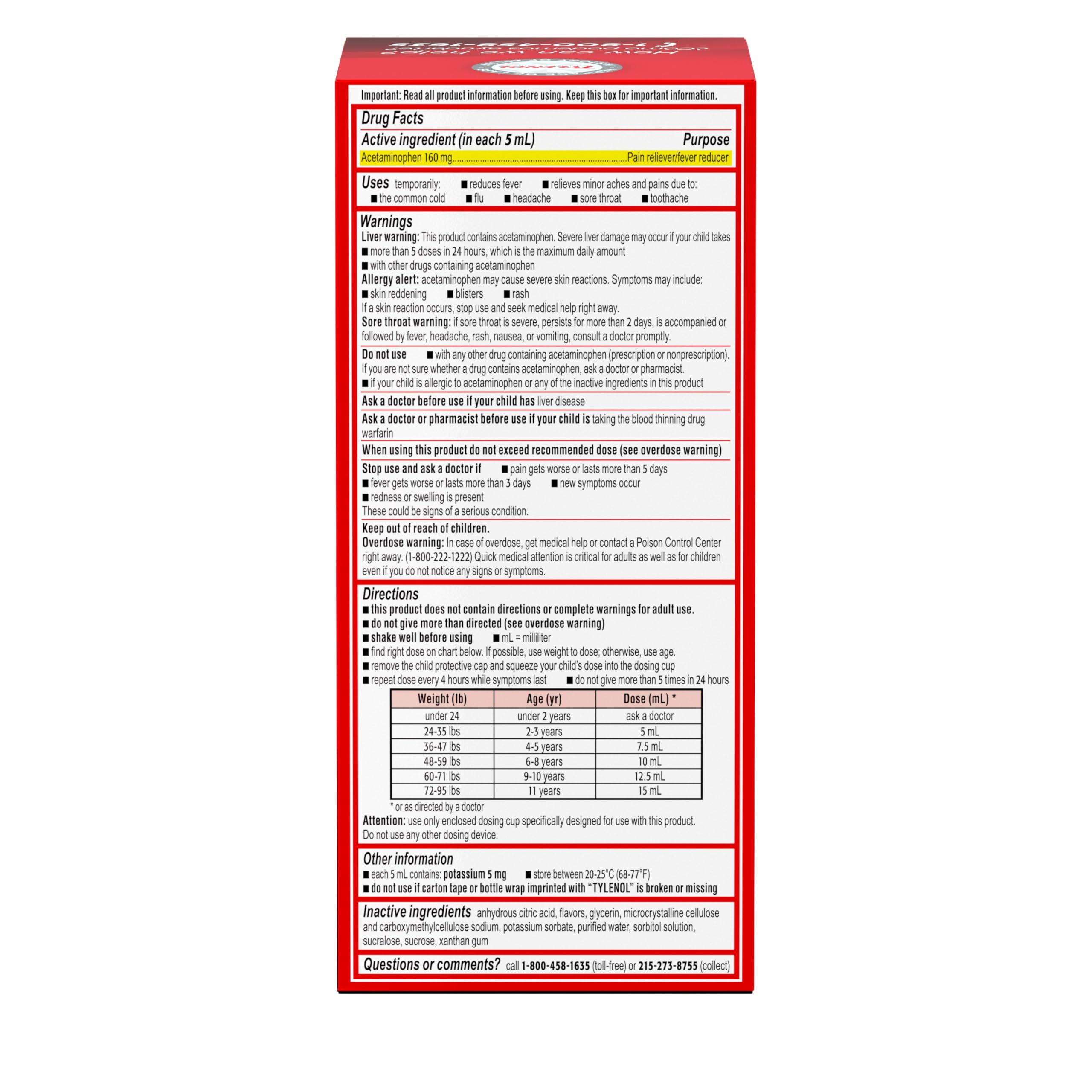 Accurate dosing made easy: includes a dosing cup and age‑ and weight‑based instructions to ensure precise 160 mg acetaminophen per 5 mL dose; safe and effective when used as directed for children ages 2 to 11; see package dosing chart.