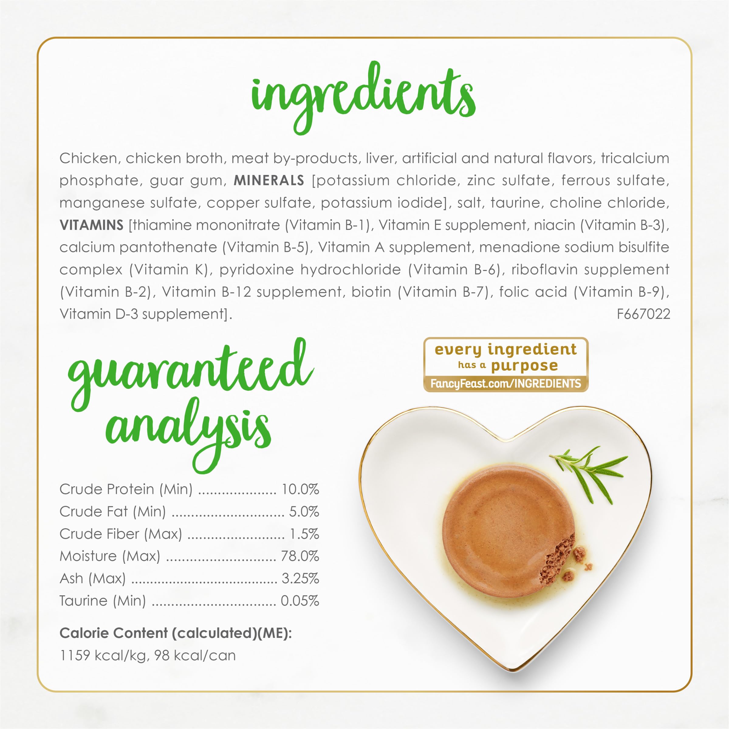 Crafted with real chicken as the number one ingredient with a smooth cat food wet pate texture