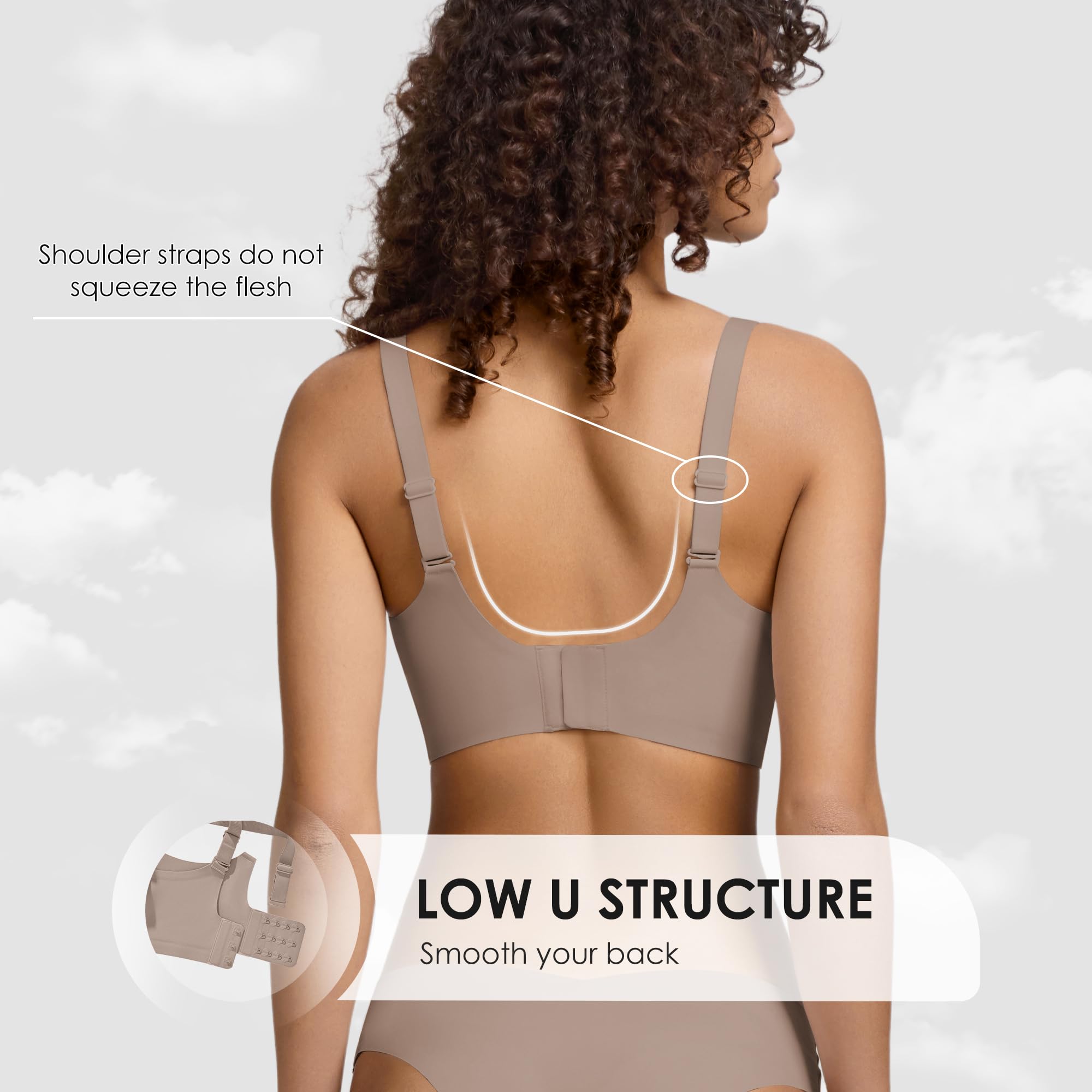 Innovative "W" jelly strip design: The unique "W" jelly strip design without underwire provides 360° full supportive and cover, gently lifting the breasts and bringing a natural and busty lifting effect to the breasts. This bra is designed to take into account both comfortable and shaping, allowing you to enjoy a cloud like soft feel all day long.
