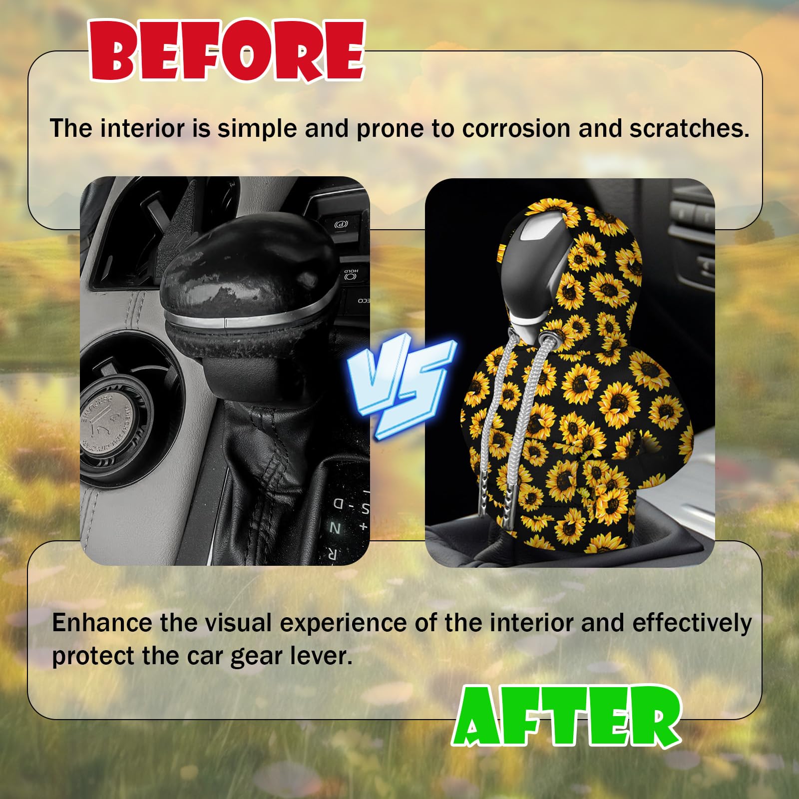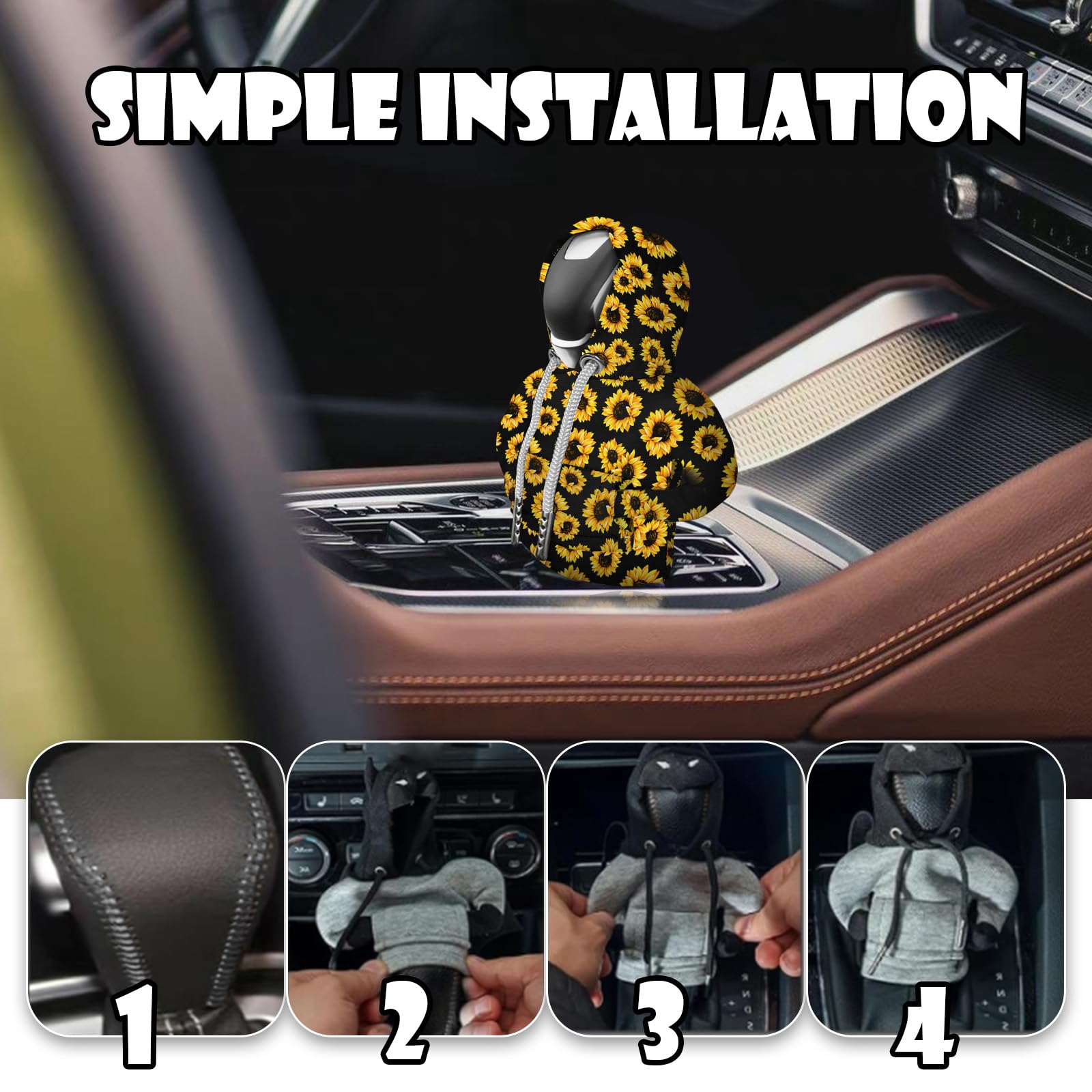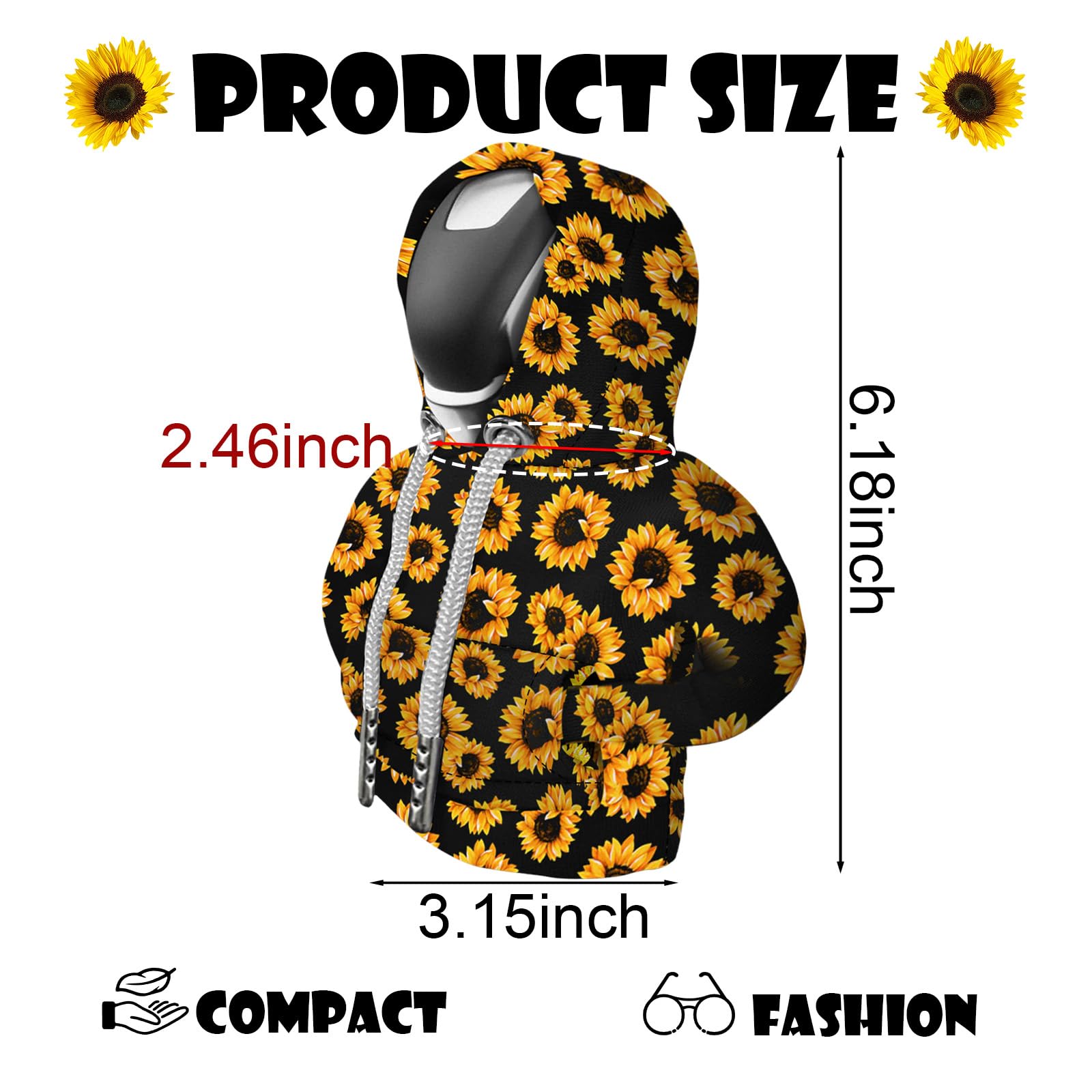 Beautiful Sunflower Design: This gear shift hoodie cover features a vibrant sunflower pattern that adds warmth and a natural feel to your car's interior. Shift knob hoodie ideal for owners who love sunshine and nature, suitable for both men and women