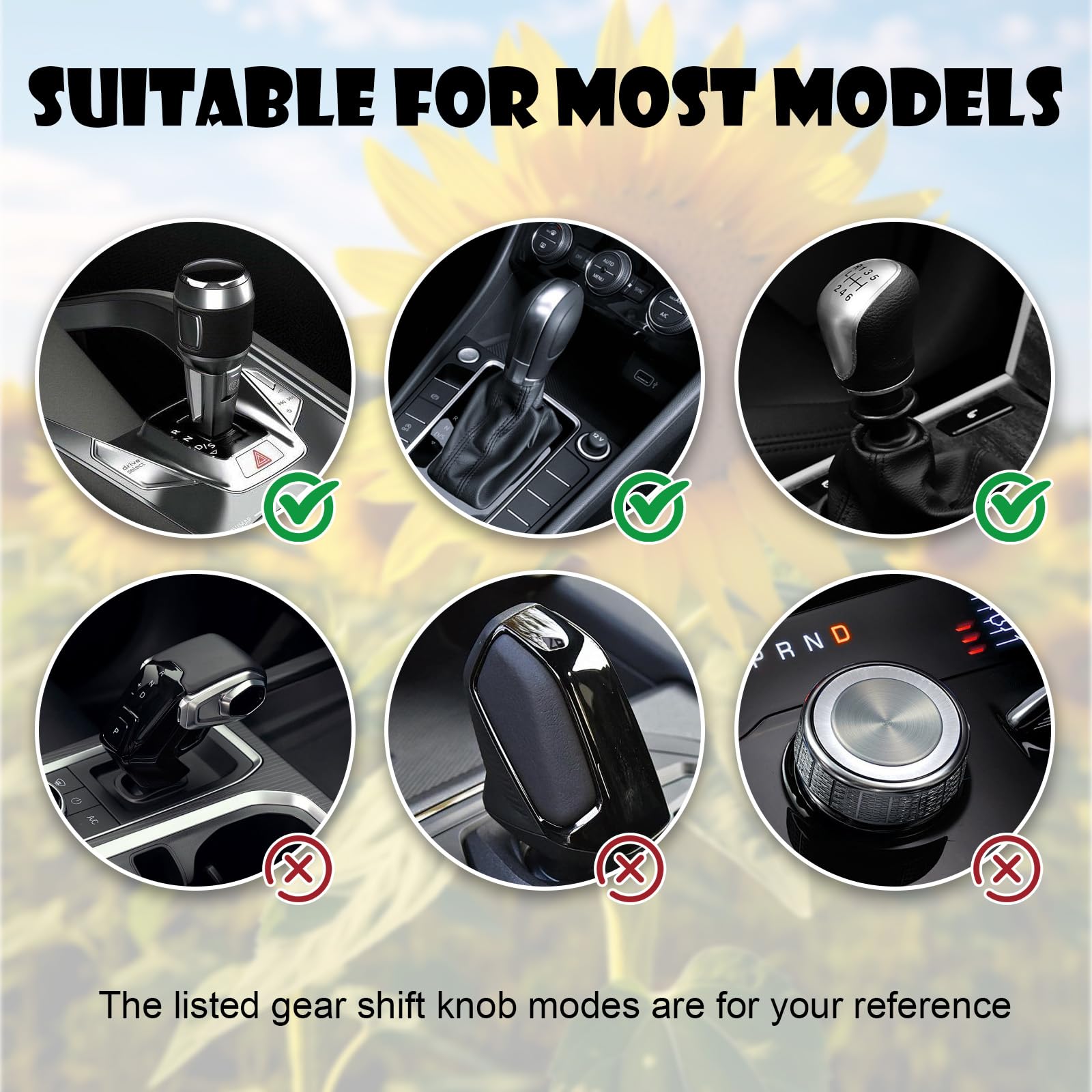 This sunflower gear shift hoodie cover infuses warmth and a natural atmosphere into your car interior. Shift knob cover vibrant sunflower pattern not only enhances visual appeal but also adds a unique personality to your driving space. Crafted from high-quality fabric, shift knob hoodie offers a soft and comfortable grip while effectively protecting your shift knob from everyday scratches and wear. Designed as a universal fit for various cars, trucks, and SUVs, cars shift knob hoodie installs easily with its elastic material ensuring a snug and secure fit. Whether for personal use or as a present, this sunflower gear shift hoodie cover is a great choice, delivering a unique driving experience and decorative effect for car owners who appreciate nature and personalized decor.