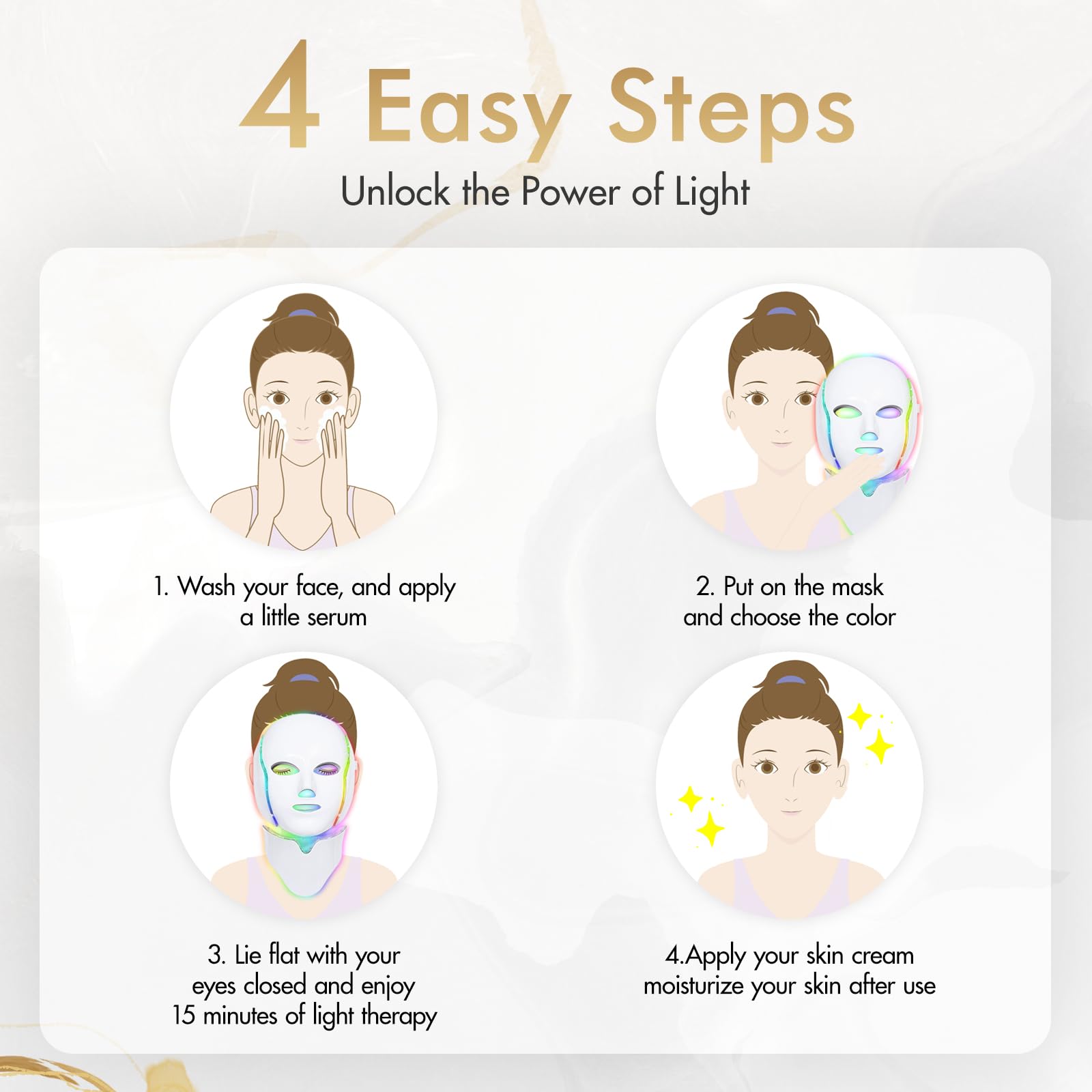 Our face features 7 different colors of light to meet your daily needs and can protect your face and neck.