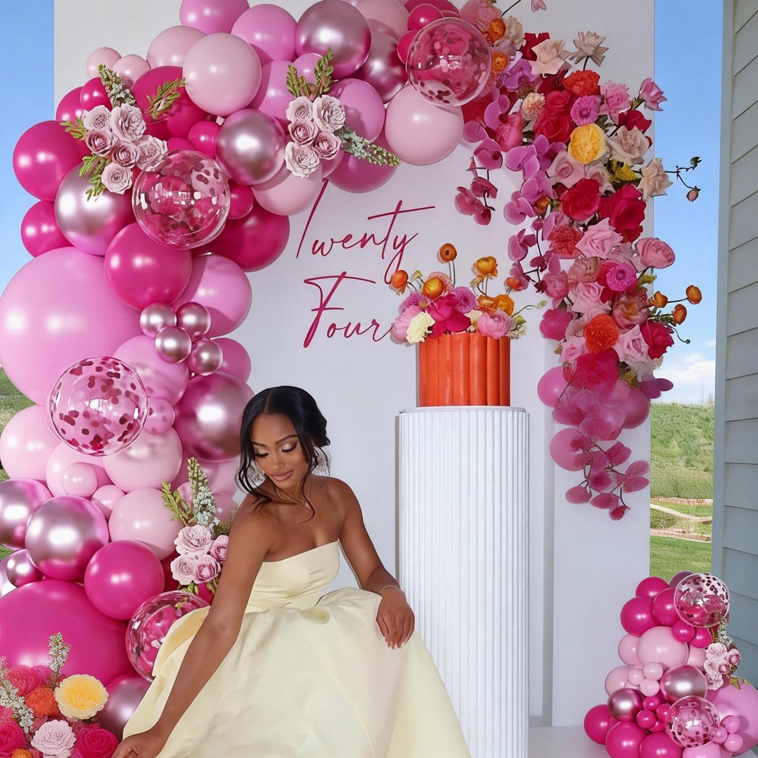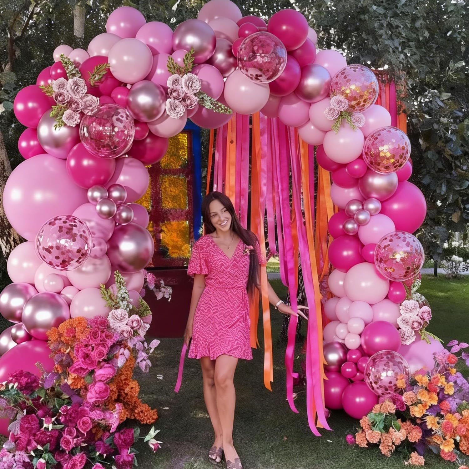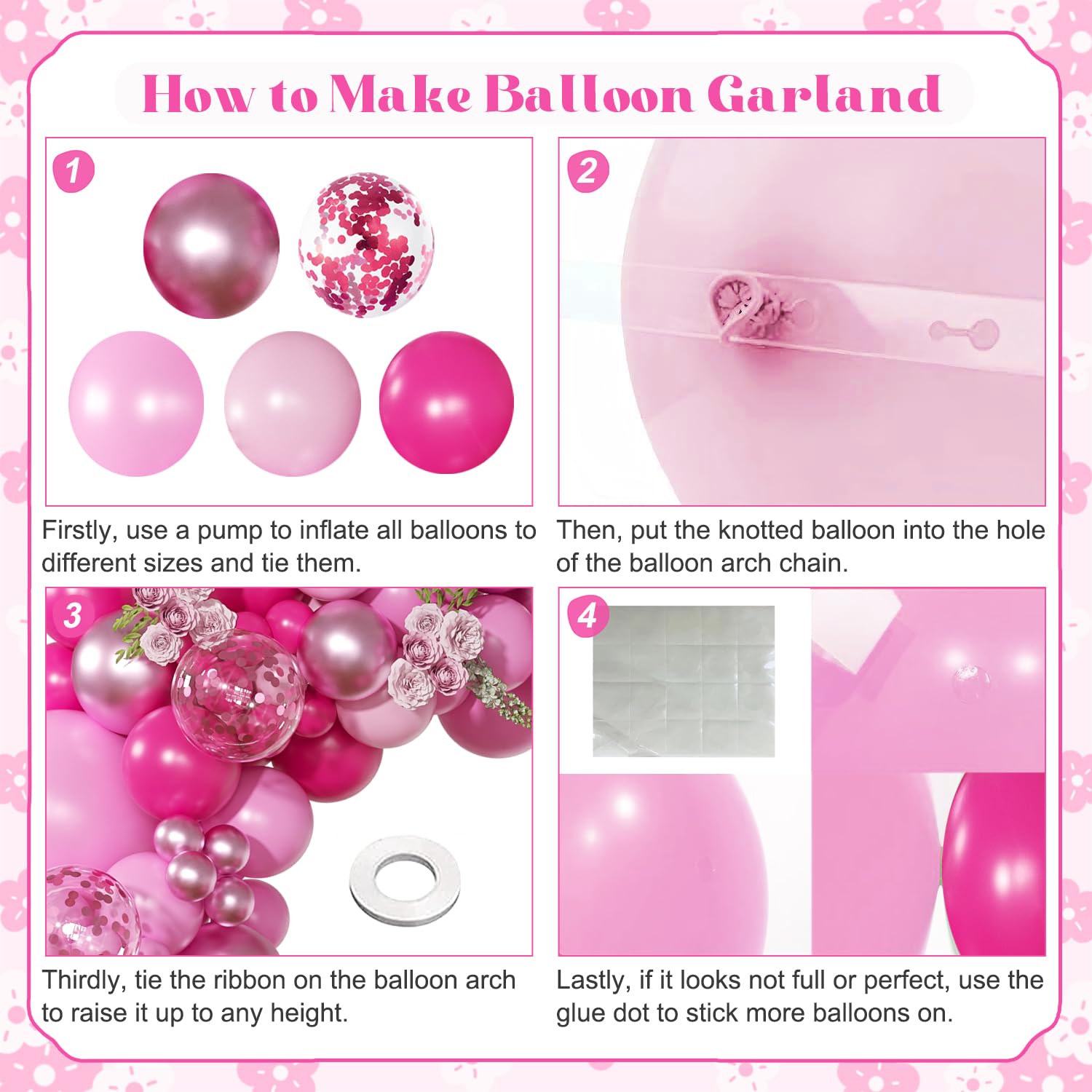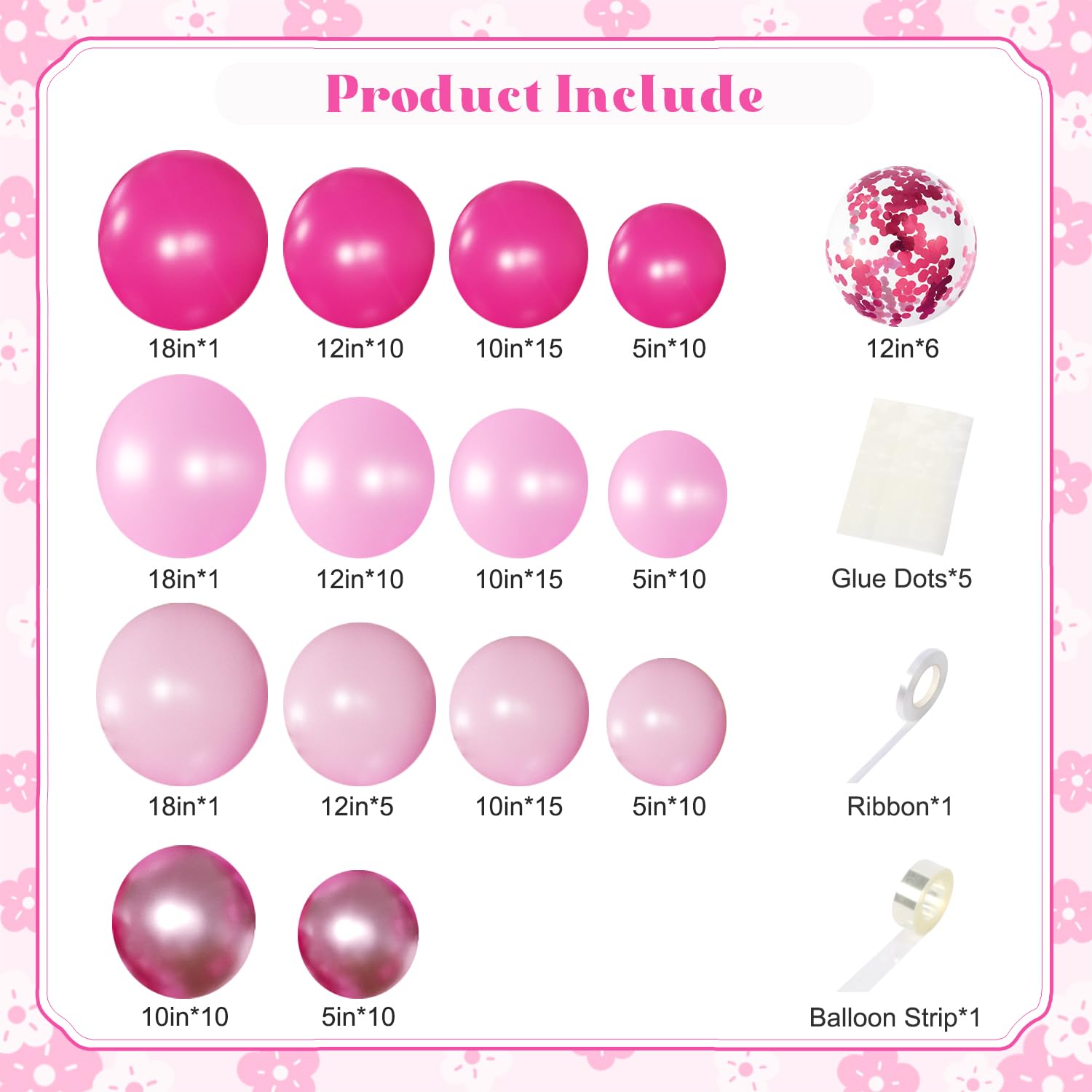 Package Include:hot pink balloon-5"*10/10"*15/12"*10/18"*1; light pink balloon-5"*10/10"*15/12"*10/18"*1; pink balloon-5"*10/10"*15/12"*5/18"*1; matt pink balloon-5"*10/10"*10; cofetti balloons-12"*6