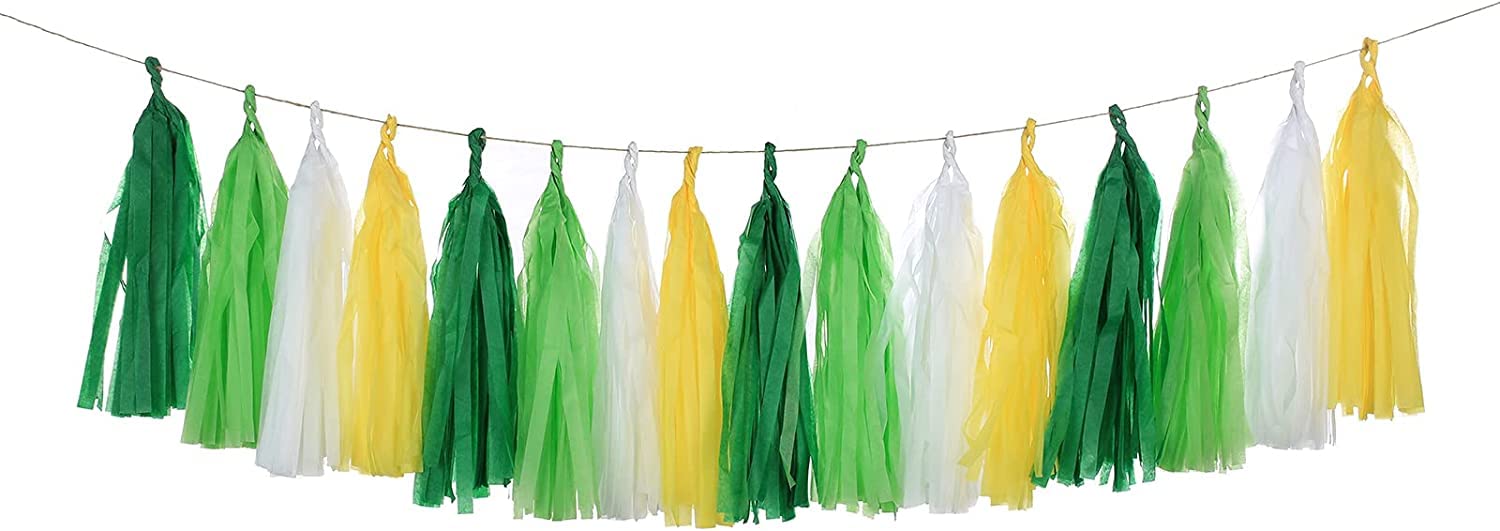 26PCS Yellow Green White Party Decorations Yellow Green Party Pom Poms for Bachelorette Engagement Birthday Wedding Baby Bridal Shower Anniversary Garden Tea Party Supplies
