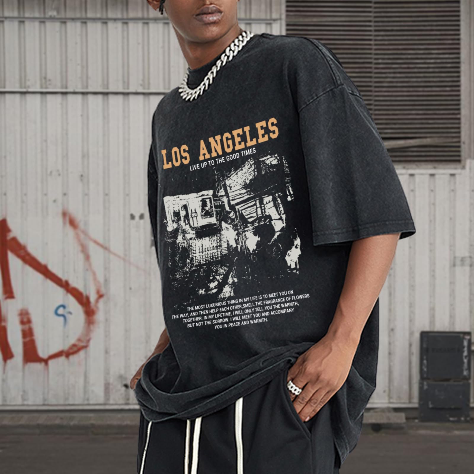 Stylish Versatility: Embrace the vintage vibe with our los angeles short sleeve shirt, designed to be fashion-forward yet classic. These baggy shirts elevate any outfit, suitable for pairing with shorts, jeans, or sweatpants