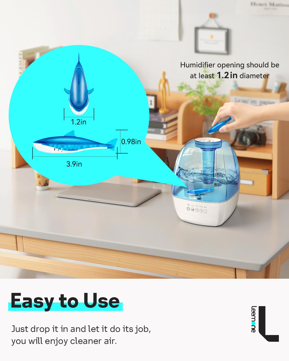 Easy to Use: Just drop in humidifer water tank for fresh and clean mist. The opening should be at least 1.3in/3.5cm in diameter