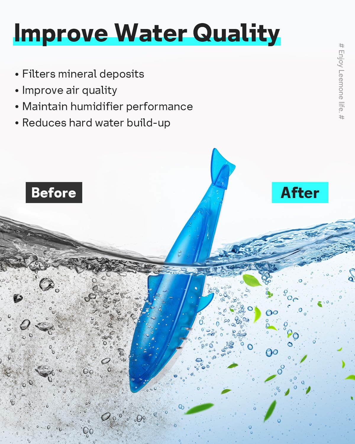 Remove Odor: The Leemone humidifier cleaning sharks remove up to 99% odor causing slimy substance and unsightly substance. One Cleaning Shark is effctive for up to two gallons of tank capacity