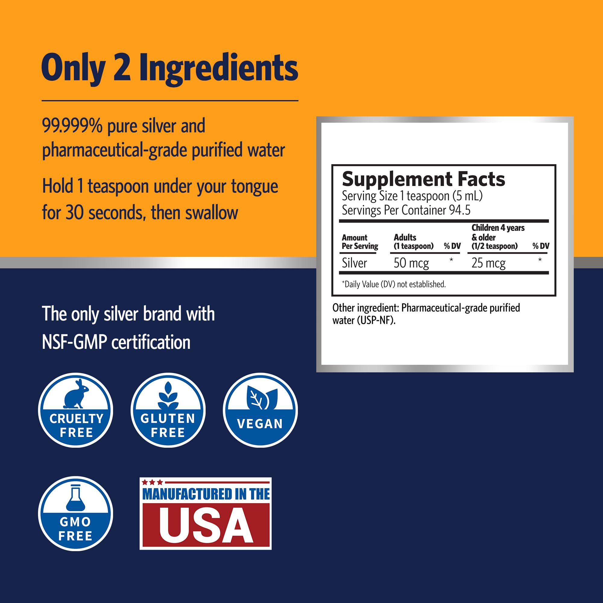 A BRAND TO TRUST - Crafted in an NSF and NASC GMP-certified facility, Sovereign Silver is the gold standard for quality, purity, and safety-- backed by science and built on trust