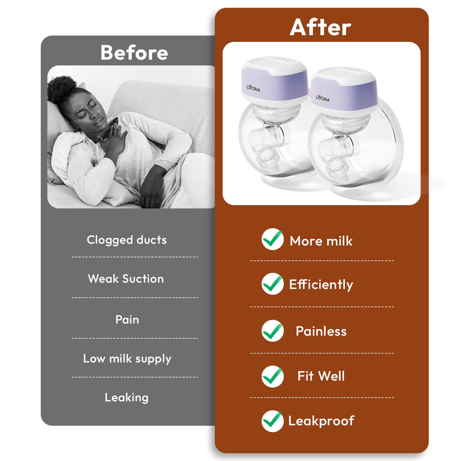 CUSTOMIZED FOR MILK EFFICIENCY-Lucina wearable breastfeeding pump hands free features 3 modes and 9 levels of suction power. You can easily adjust the breast pump suction strength according to the amount of milk and comfort level and customize your own electric breast pumping experience.