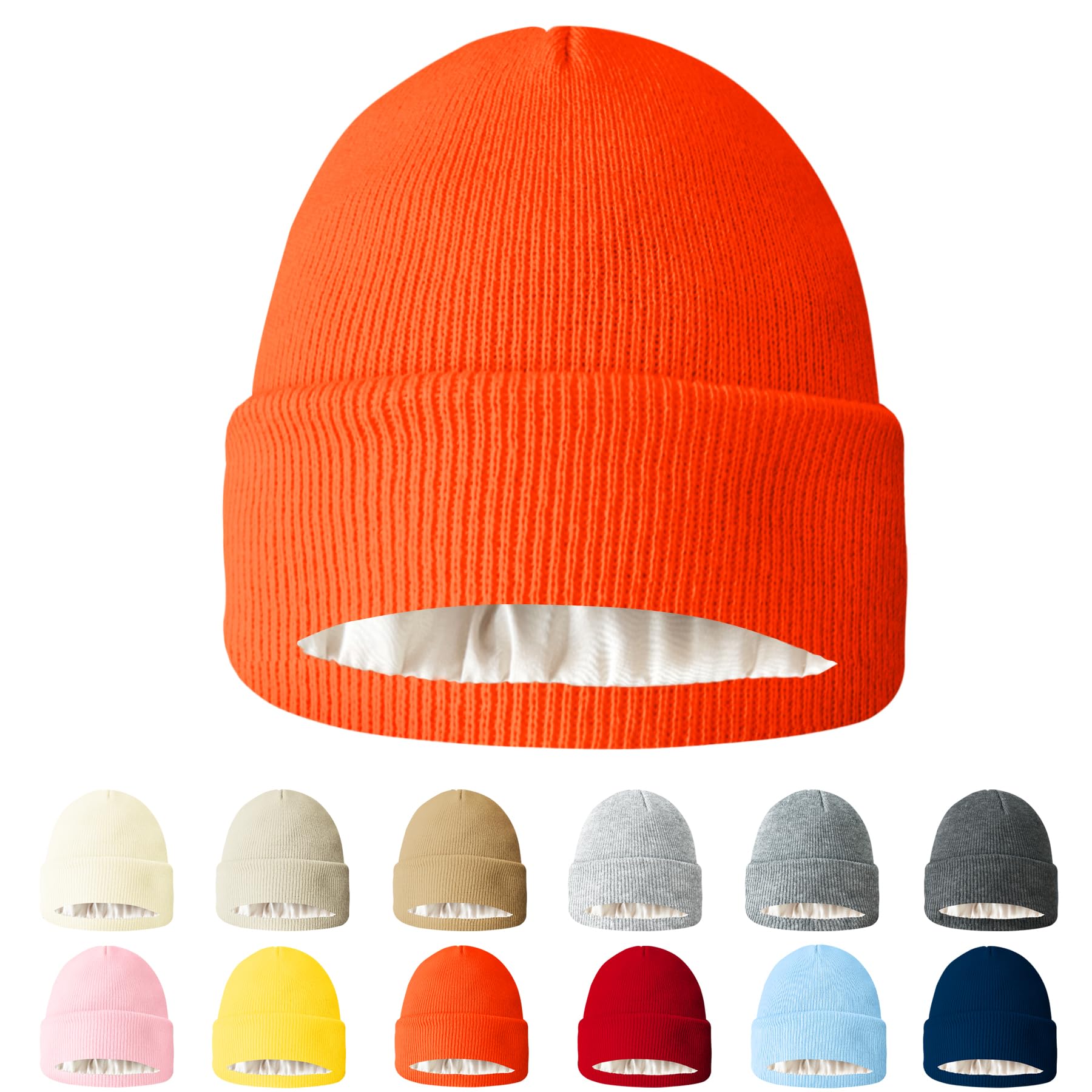 WARM & COMFORT: Feature double layer satin silk lined, you can pull the cuff of beanies down to cover head and ears to keep them extra comforable and warm.The satin lined beanies soft to touch, comfortable to wear when walking, sleeping, working.