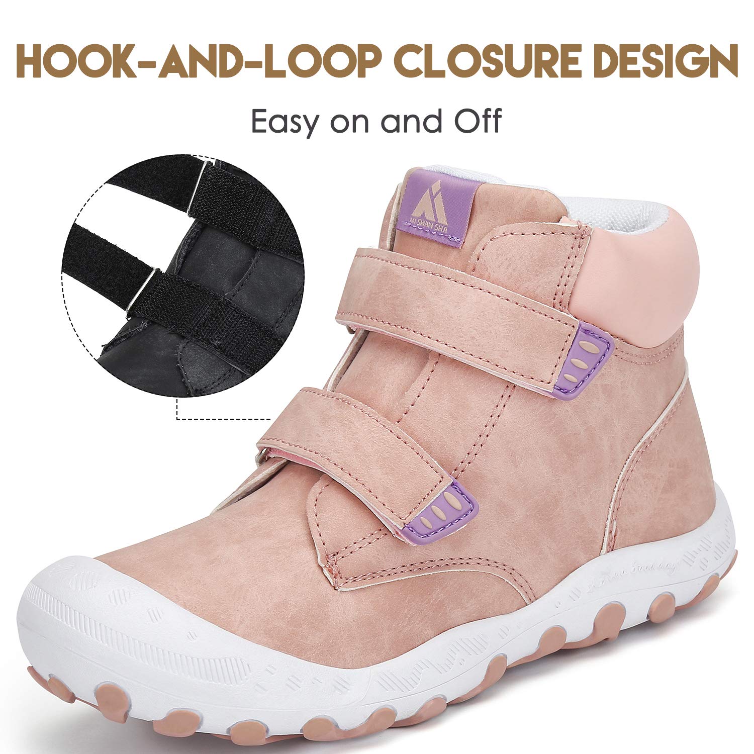 EASY ON AND OFF: Girls boys hiking shoes are designed with hook-and-loop strap and elastic adjustable buckle provides child a secure fit and easy to put on and take off.