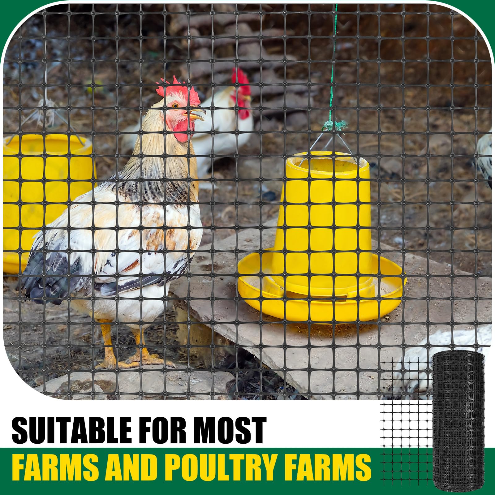 164 Feet in Length: the plastic safety fence measures about 2' x 164', suitable for most farms and poultry farms, with 1.5 x 1.5 inches mesh openings, it ensures sufficient airflow and light, and is still small enough, will not let poultry or animals pass through, preventing them from damaging plants, trees and fruits while protecting your poultry