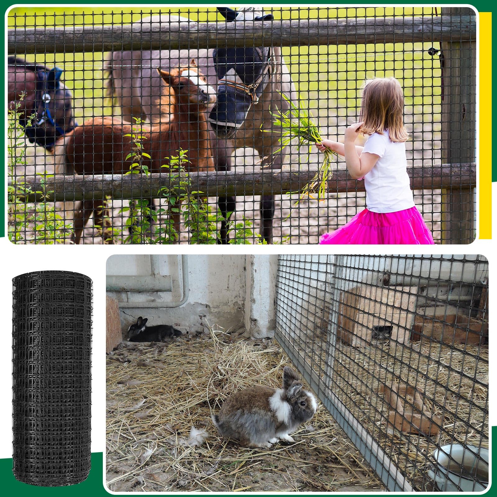Reliable Material: the plastic fencing rolls are made of quality plastic, sturdy and strong enough to resist animal bites and scratches; Plastic fencing is UV resistant, waterproof and corrosion resistant, can withstand any outdoor weather, and maintain the strength and flexibility of the material for many years