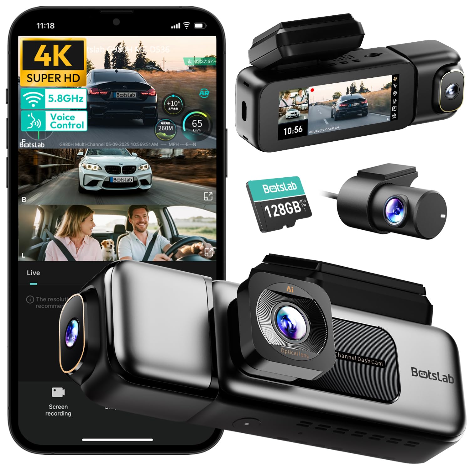 【Night Vision + 8s Pre-Recording】4K Dash Cam features F1.8 aperture and 6-element all-glass lens, enhancing nighttime brightness by 300%. With 940nm infrared fill light and WDR, it ensures balanced exposure in backlight or low-light conditions. Botslab Dash Cam is equipped with a G-sensor collision detector, automatically triggering emergency locking upon impact and saving the critical 8 seconds before the incident. Free 128GB card, it fully captures emergency events without missing a moment.