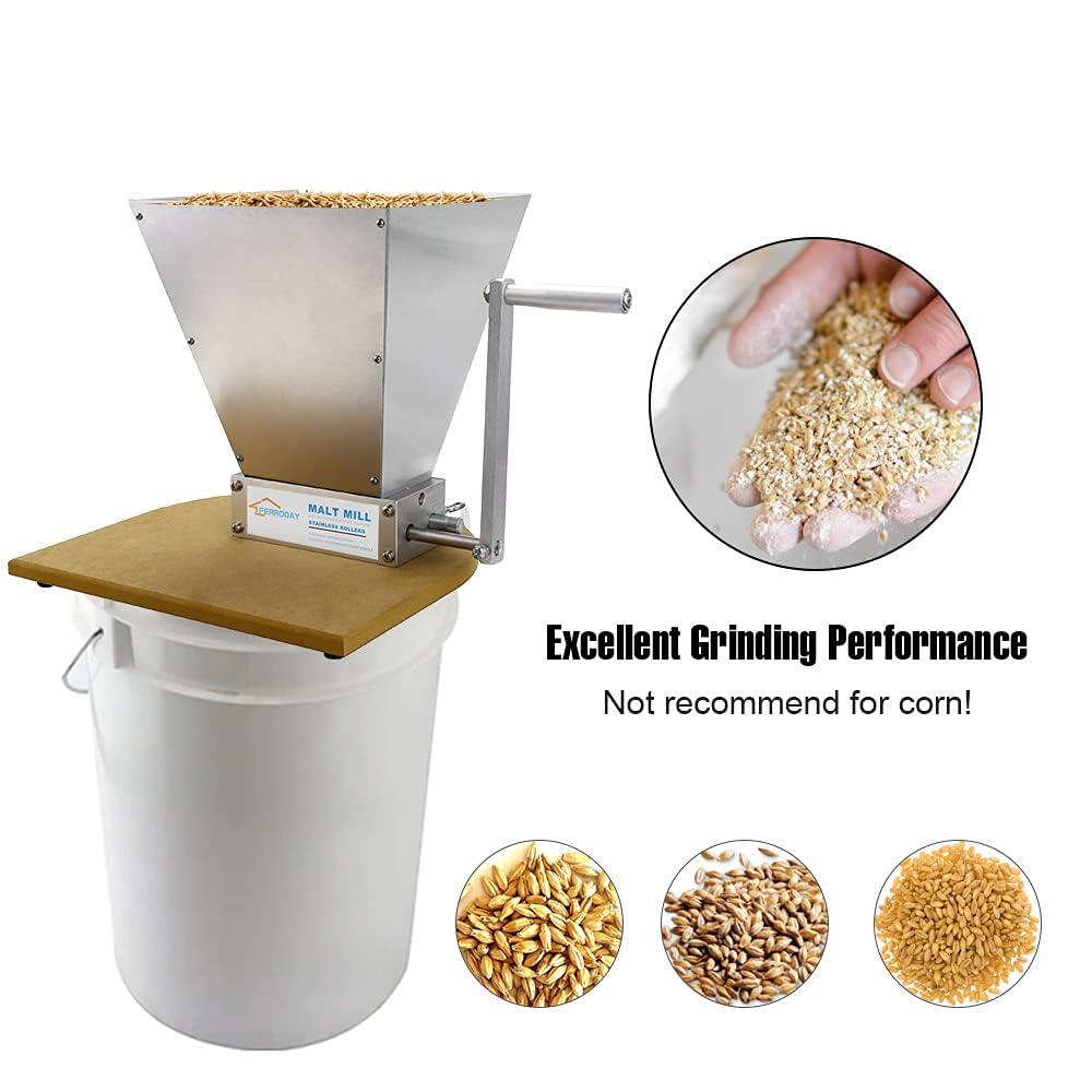 Large 7.7LB Hopper: Upgrade a thicker hopper that can hold up to 7.7 lb grains at one time. Large capacity for you to handle large batches of brewing. Specially designed to crush malt for beer brew, good for mill malted barley and malted wheat. Note: NOT for corns and soybeans; NOT for flake or flour