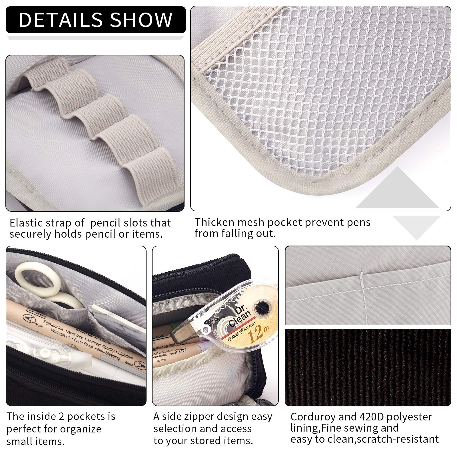 【High Quality】The Unique design with high quality Corduroy, and strong zipper makes the pencil bag more durable, scratch resistant and wear resistant, easy to clean.