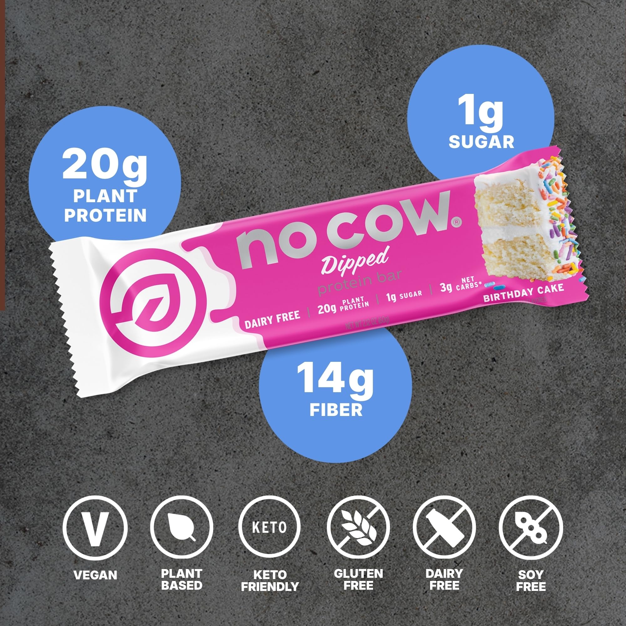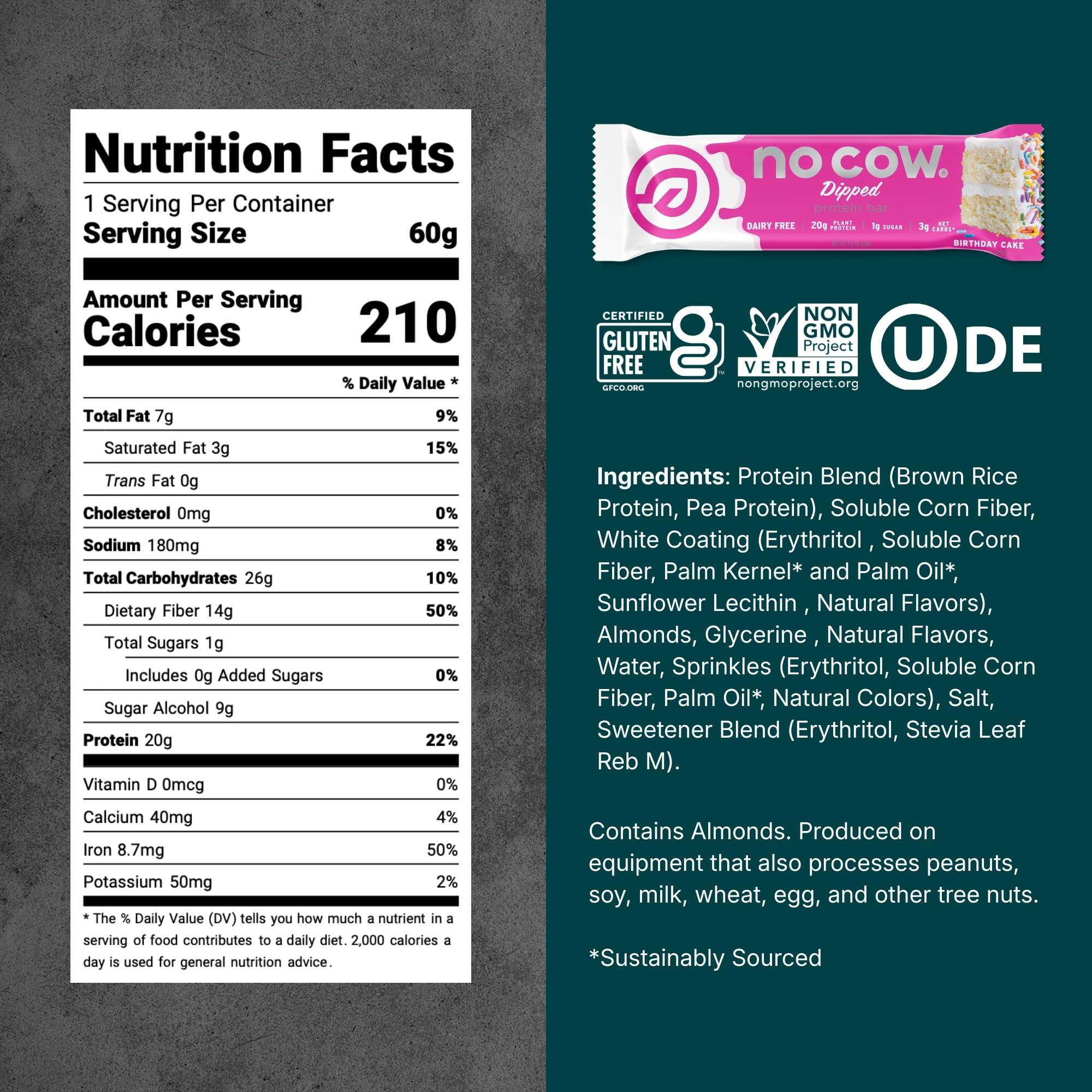 BIRTHDAY CAKE VEGAN PROTEIN BAR – Sweet cake flavor with colorful sprinkles in a plant-based protein snack. Each box contains 12 – 2.12 oz (60g) vegan protein bars. Gluten-free, dairy-free, and high protein.