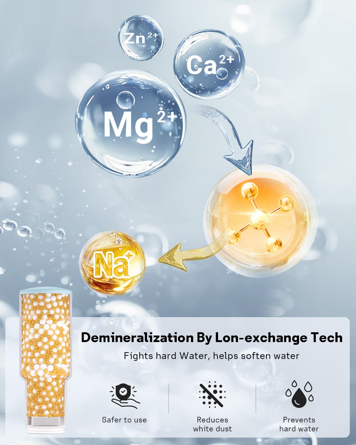 2. Ion-Exchange Demineralization Employs advanced ion-exchange technology to actively reduce minerals like calcium and magnesium in water, helping to prevent white dust and scale for consistently cleaner mist.