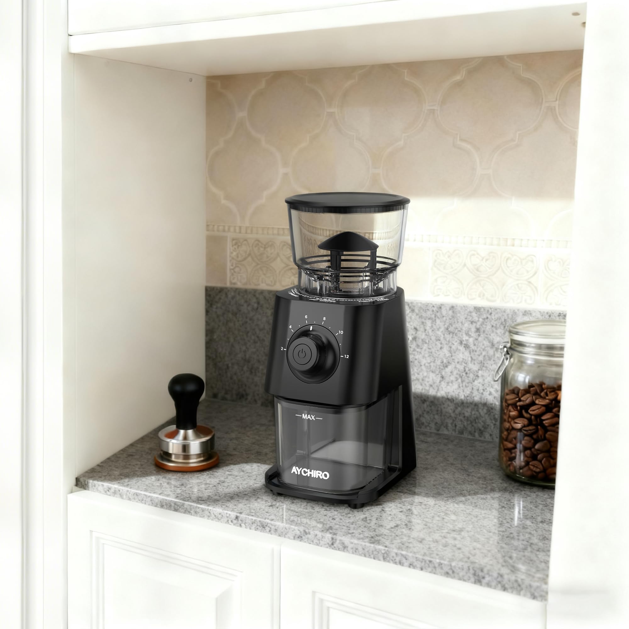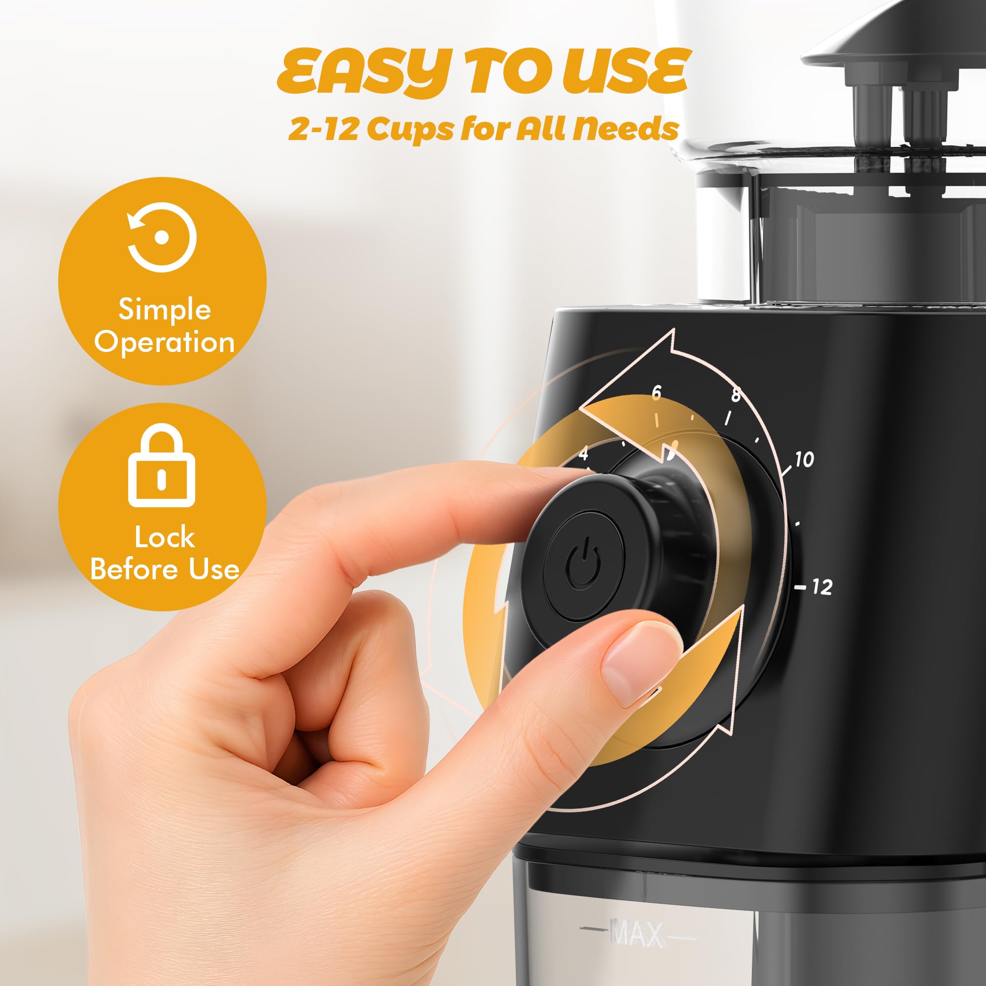 Intuitive Dial Knob Control:Black dial knob with clear markings enables effortless switching between grind sizes in seconds, eliminating guesswork for beginners and coffee lovers alike