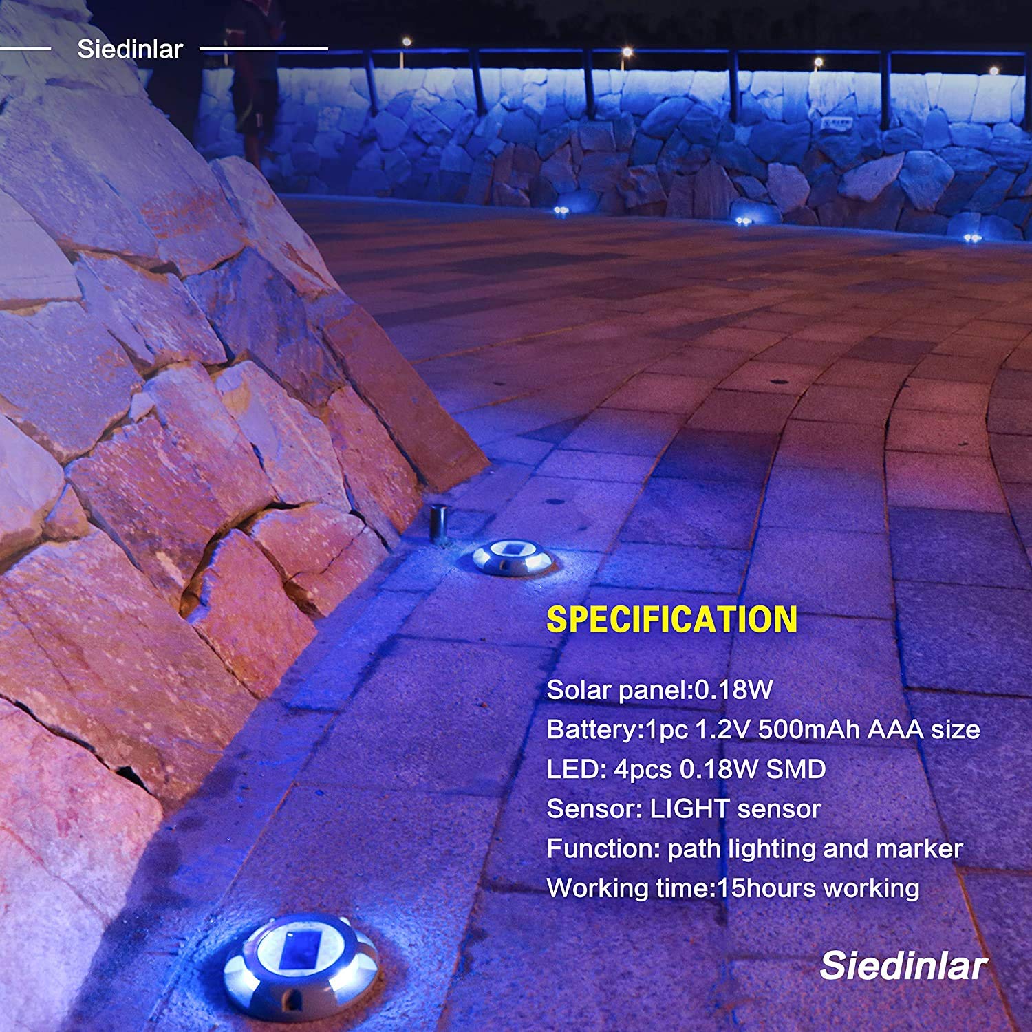 【Elegant Design】Siedinlar Solar deck lights is made of aluminium alloy, solar panels, led, and storage battery. With its pressure resistance design, no need for hand controlling, simple, safe.