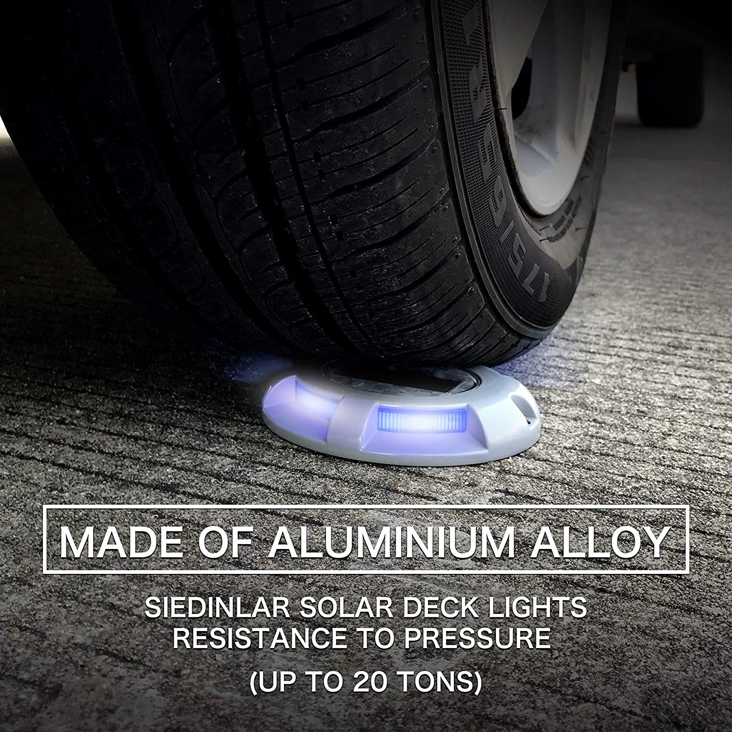 【Resistance to Pressure】Solar dock lights Resistance to pressure (up to 20 tons) . It will not be damaged even the car or truck run over it. With the great illumination, it can prevent the accidence. Can be used for deck, road, dock, path, driveway, garden, walkway, sidewalk, step, stairs, etc.