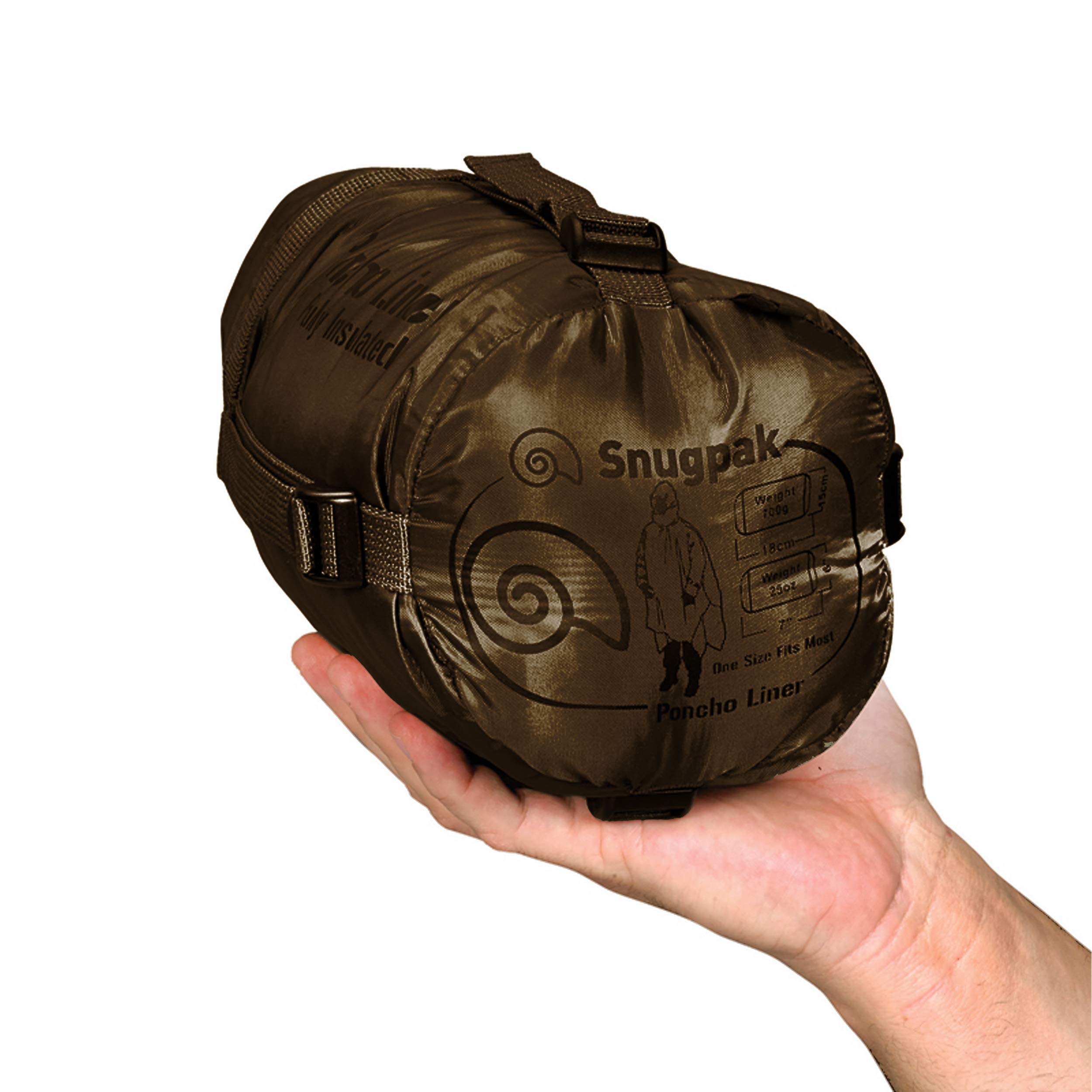 Description This Snugpak Poncho liner is not your fathers or grandfathers poncho liner. Unlike the older square shaped style poncho liner, many have come to know the Snugpak poncho liner has a dedicated hood with draw cord as well as dedicated sleeves. No more cold.