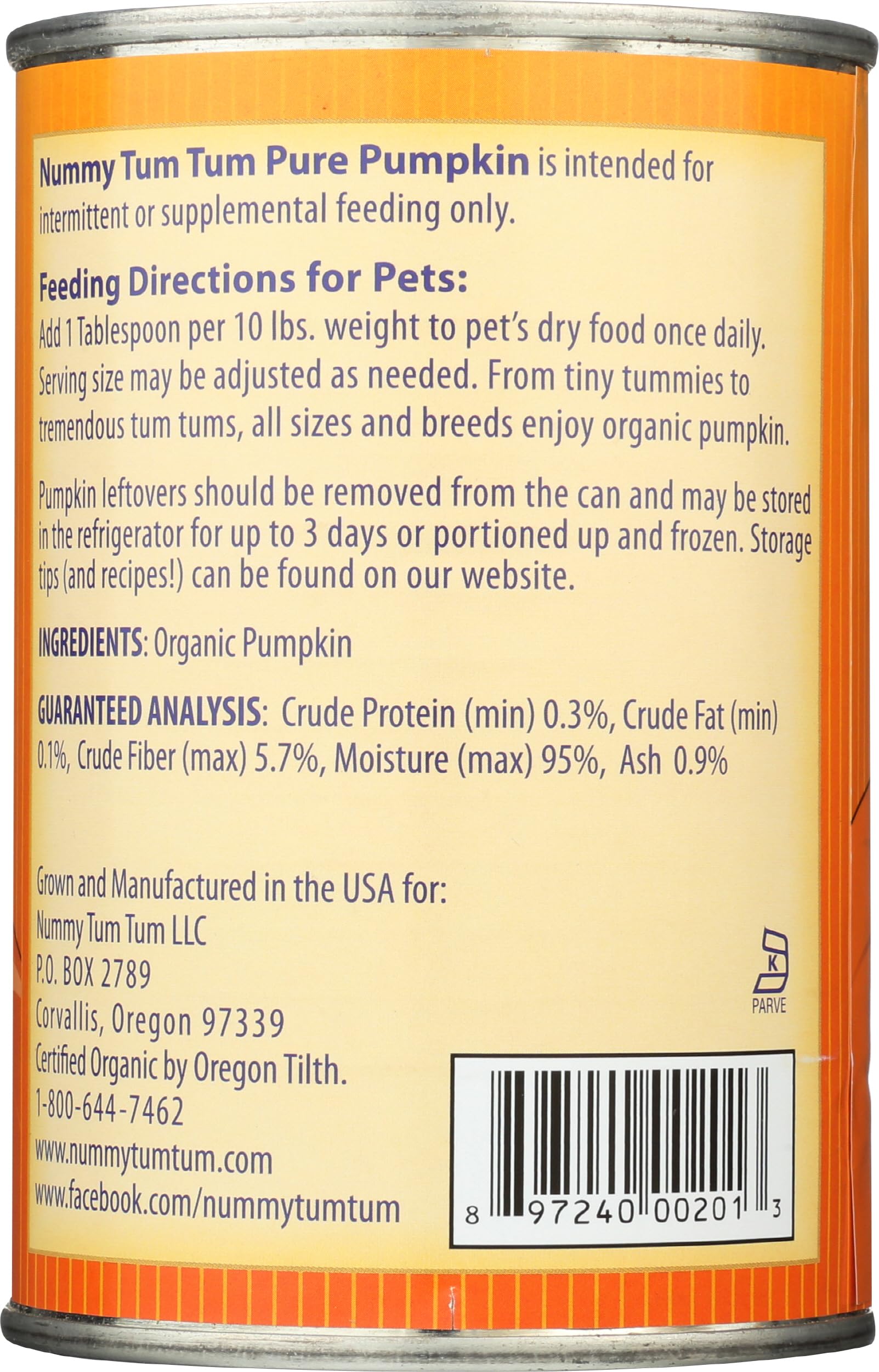 One 15 Oz. Can Nummy Tum Tum Pure Pumpkin For Pets, Pumpkin Organic